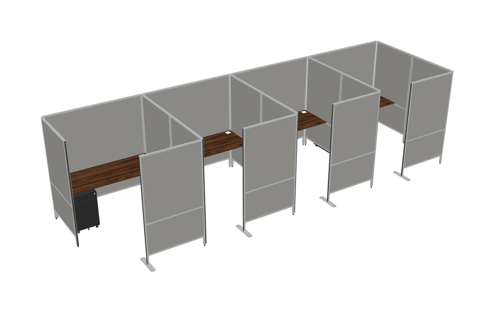 Columbia Walnut Flexible Panel System With Privacy For 4 + Metal Mobile Drawers