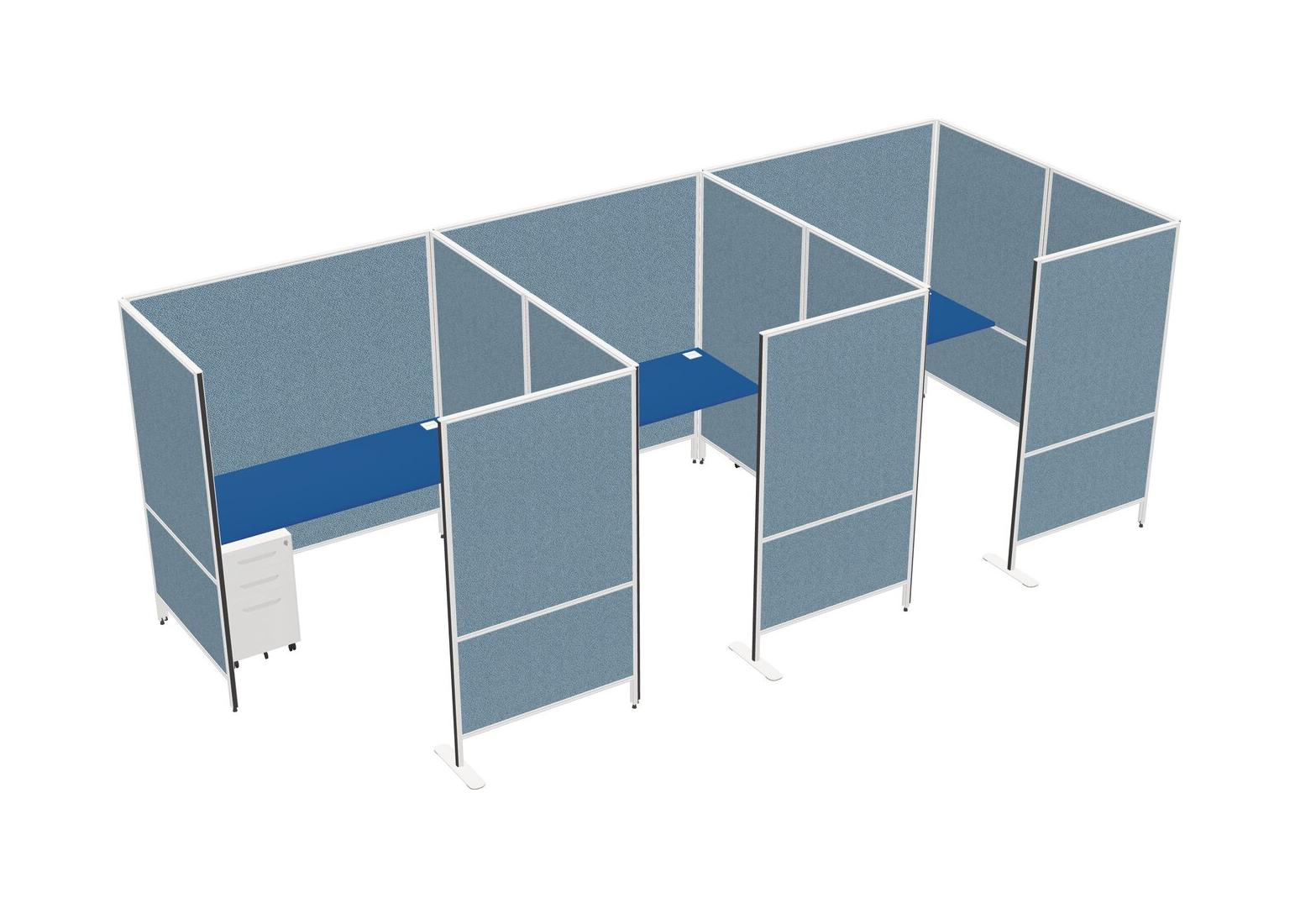 Prism Blue Flexible Panel System With Privacy For 3 + Metal Mobile Drawers