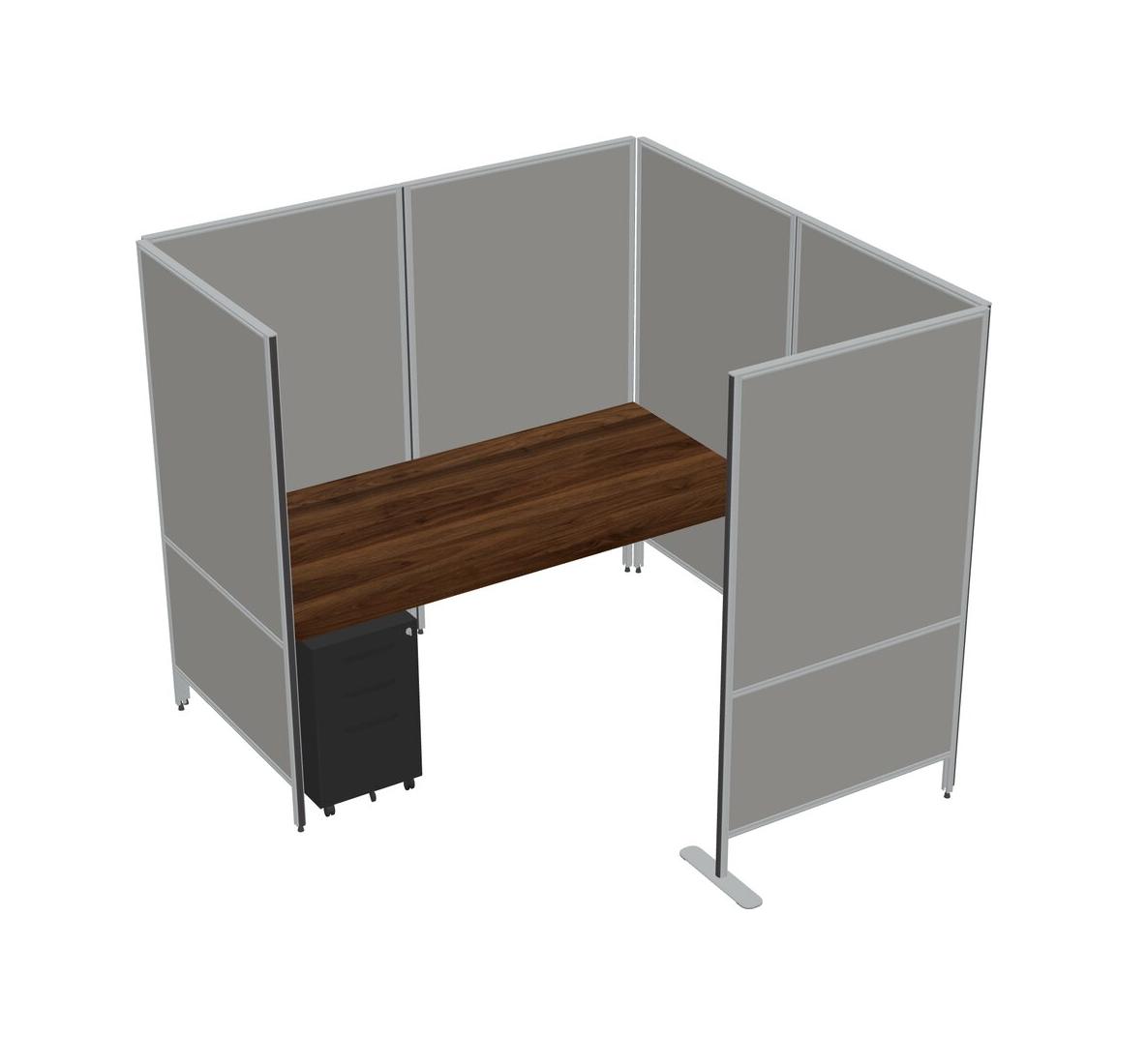 Columbia Walnut Flexible Panel System With Privacy For 1 + Metal Mobile Drawers
