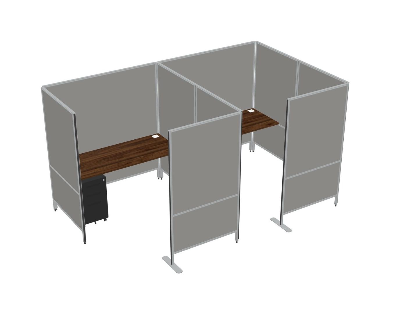 Columbia Walnut Flexible Panel System With Privacy For 2 + Metal Mobile Drawers