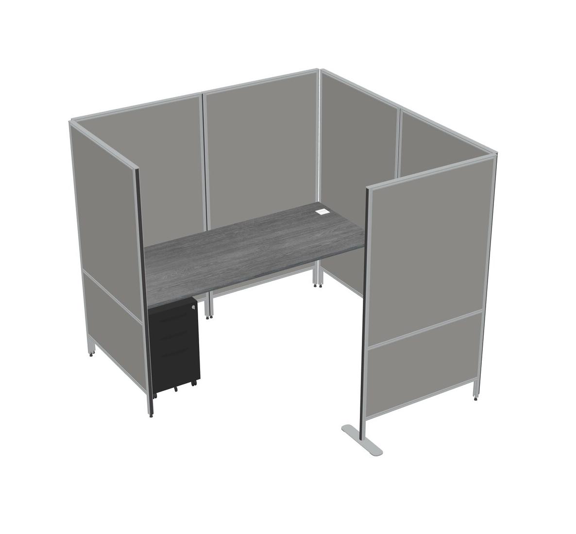 Grey Flexible Panel System With Privacy For 1 + Metal Mobile Drawers