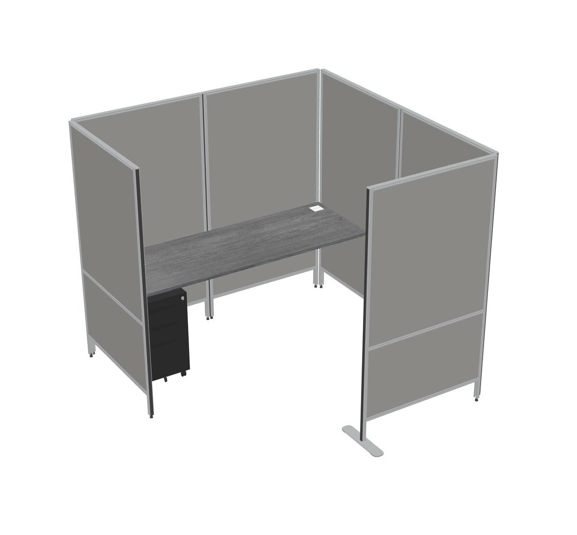 Grey Flexible Panel System With Privacy For 1 + Metal Mobile Drawers