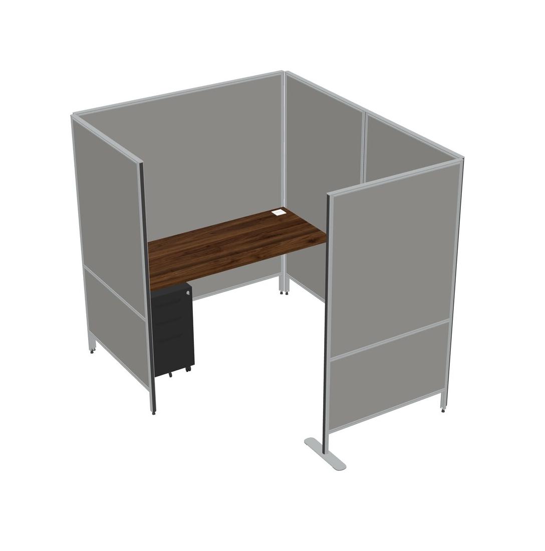 Columbia Walnut Flexible Panel System With Privacy For 1 + Metal Mobile Drawers