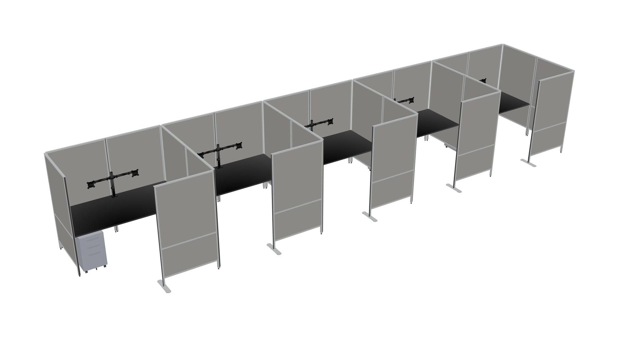 Black Flexible Panel System With Privacy For 5 + Metal Mobile Drawers + Monitor Arm (double Arms)