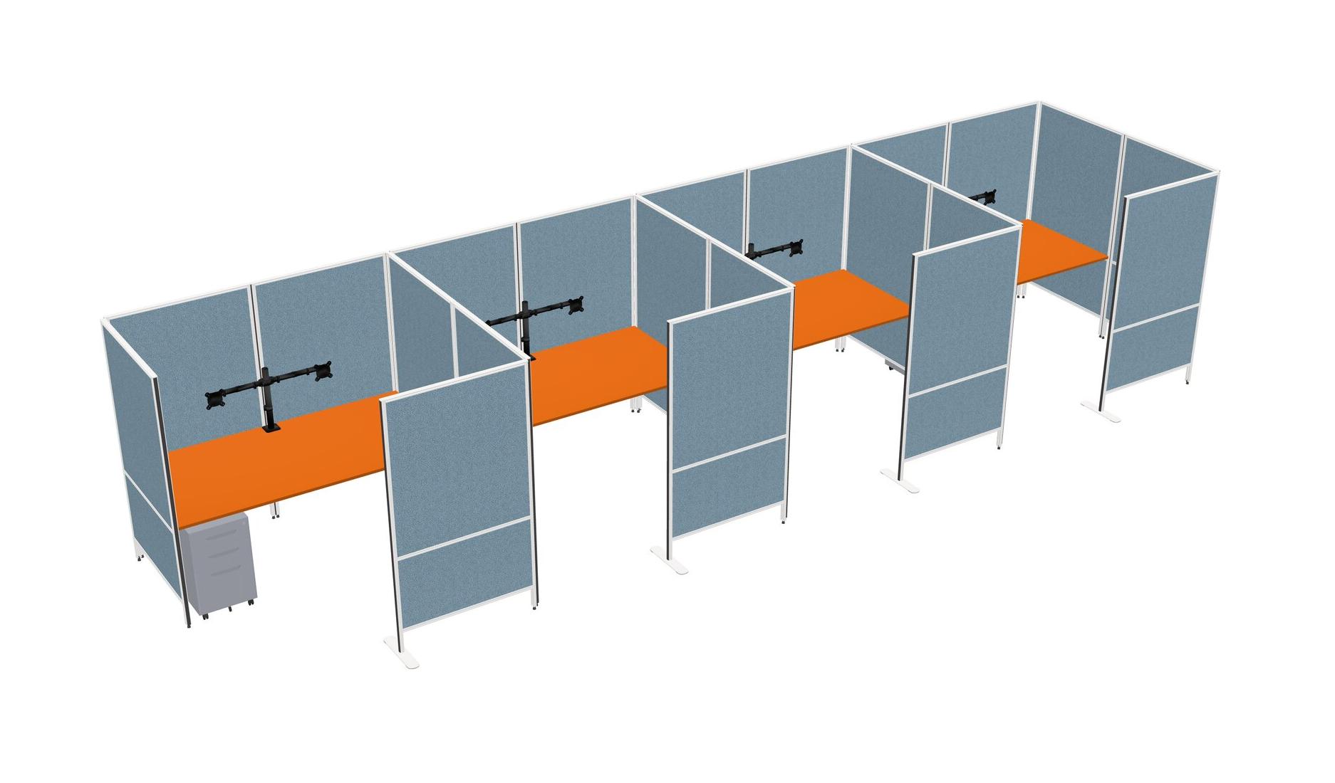 Orange Flexible Panel System With Privacy For 4 + Metal Mobile Drawers + Monitor Arm (double Arms)