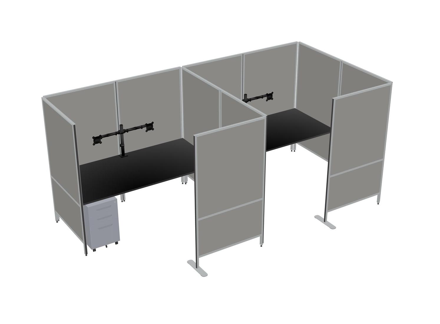 Black Flexible Panel System With Privacy For 2 + Metal Mobile Drawers + Monitor Arm (double Arms)