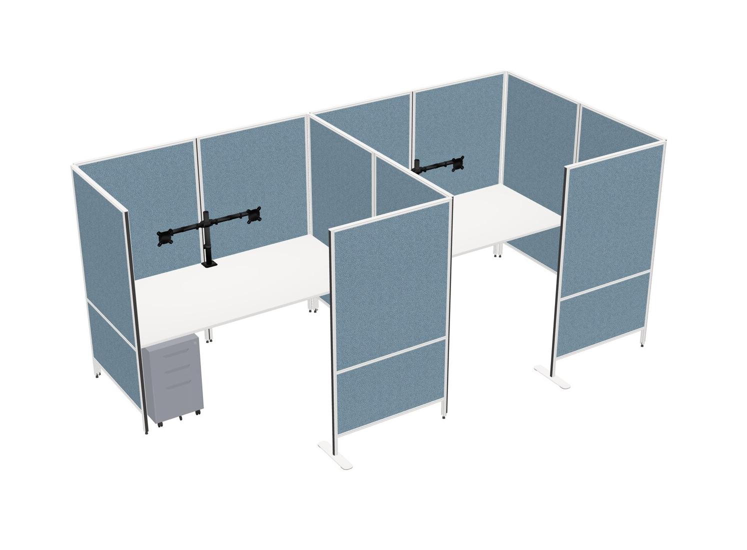 White Flexible Panel System With Privacy For 2 + Metal Mobile Drawers + Monitor Arm (double Arms)