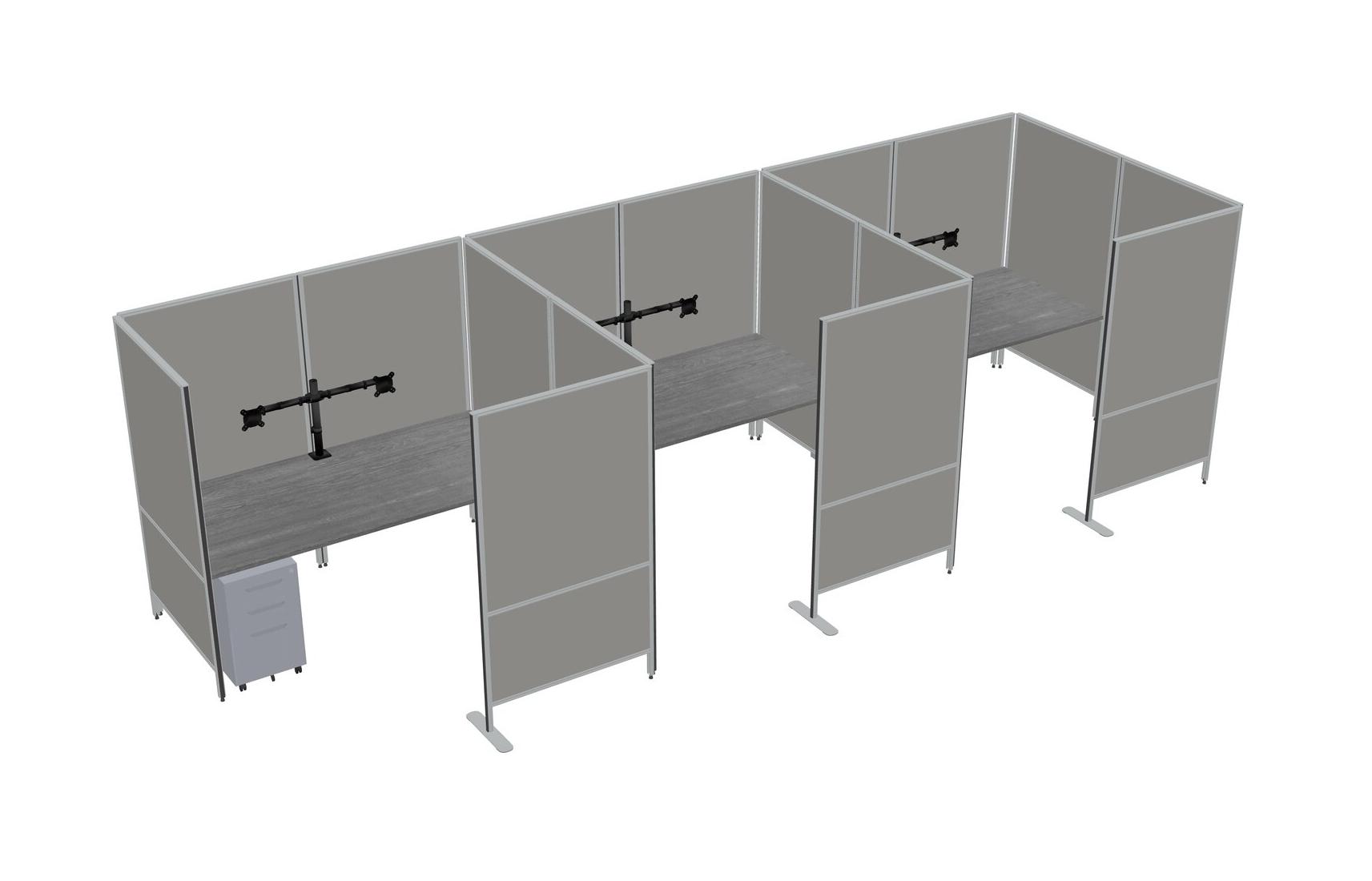 Grey Flexible Panel System With Privacy For 3 + Metal Mobile Drawers + Monitor Arm (double Arms)