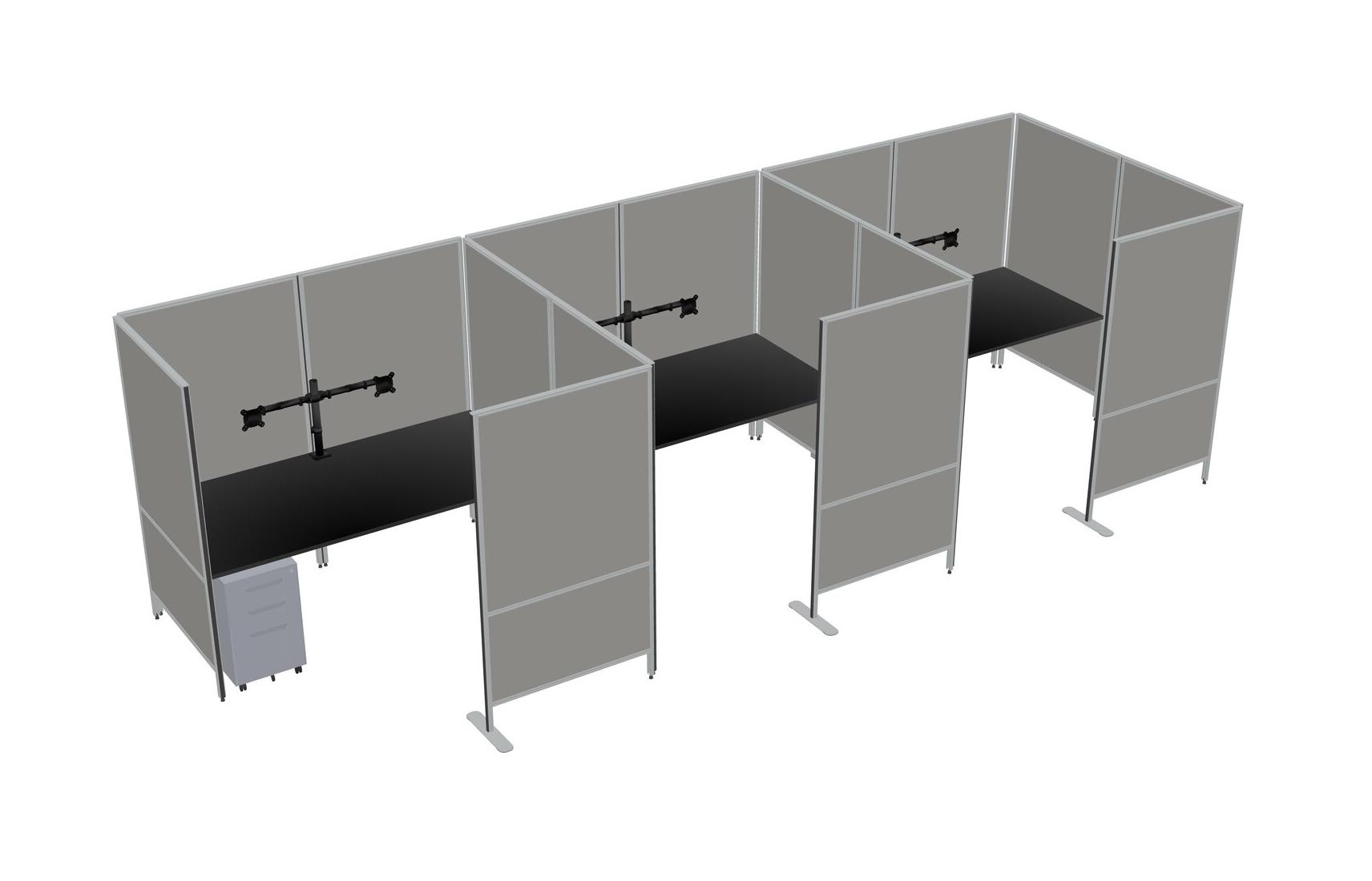 Black Flexible Panel System With Privacy For 3 + Metal Mobile Drawers + Monitor Arm (double Arms)
