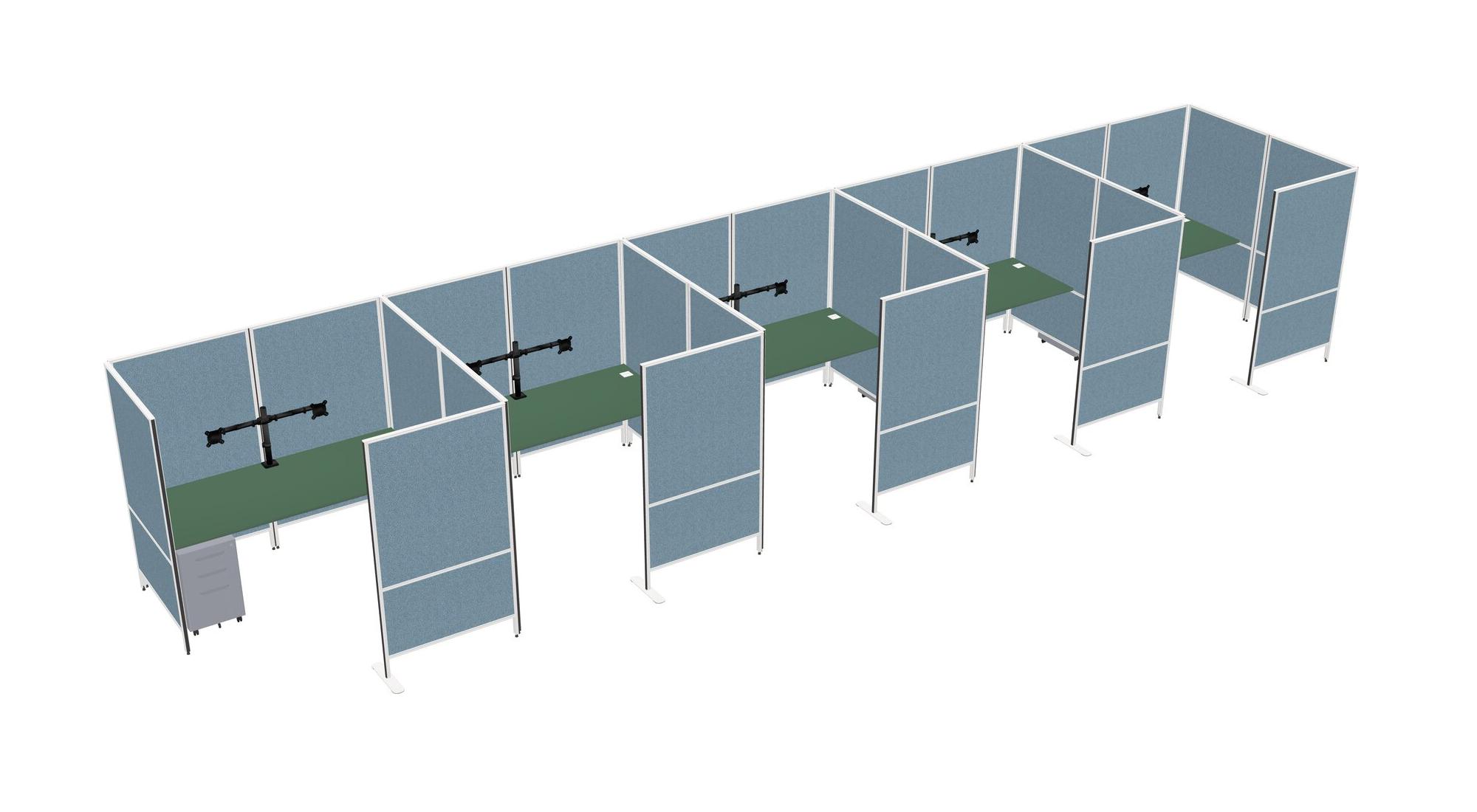 Green Flexible Panel System With Privacy For 5 + Metal Mobile Drawers + Monitor Arm (double Arms)