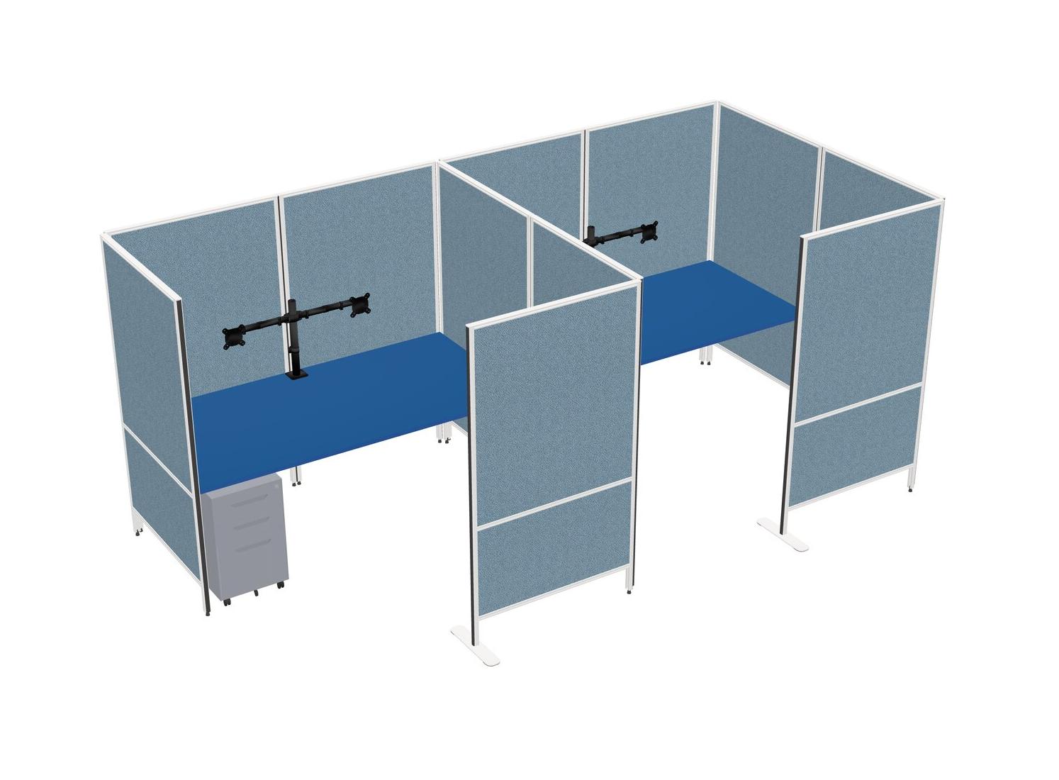 Prism Blue Flexible Panel System With Privacy For 2 + Metal Mobile Drawers + Monitor Arm (double Arms)