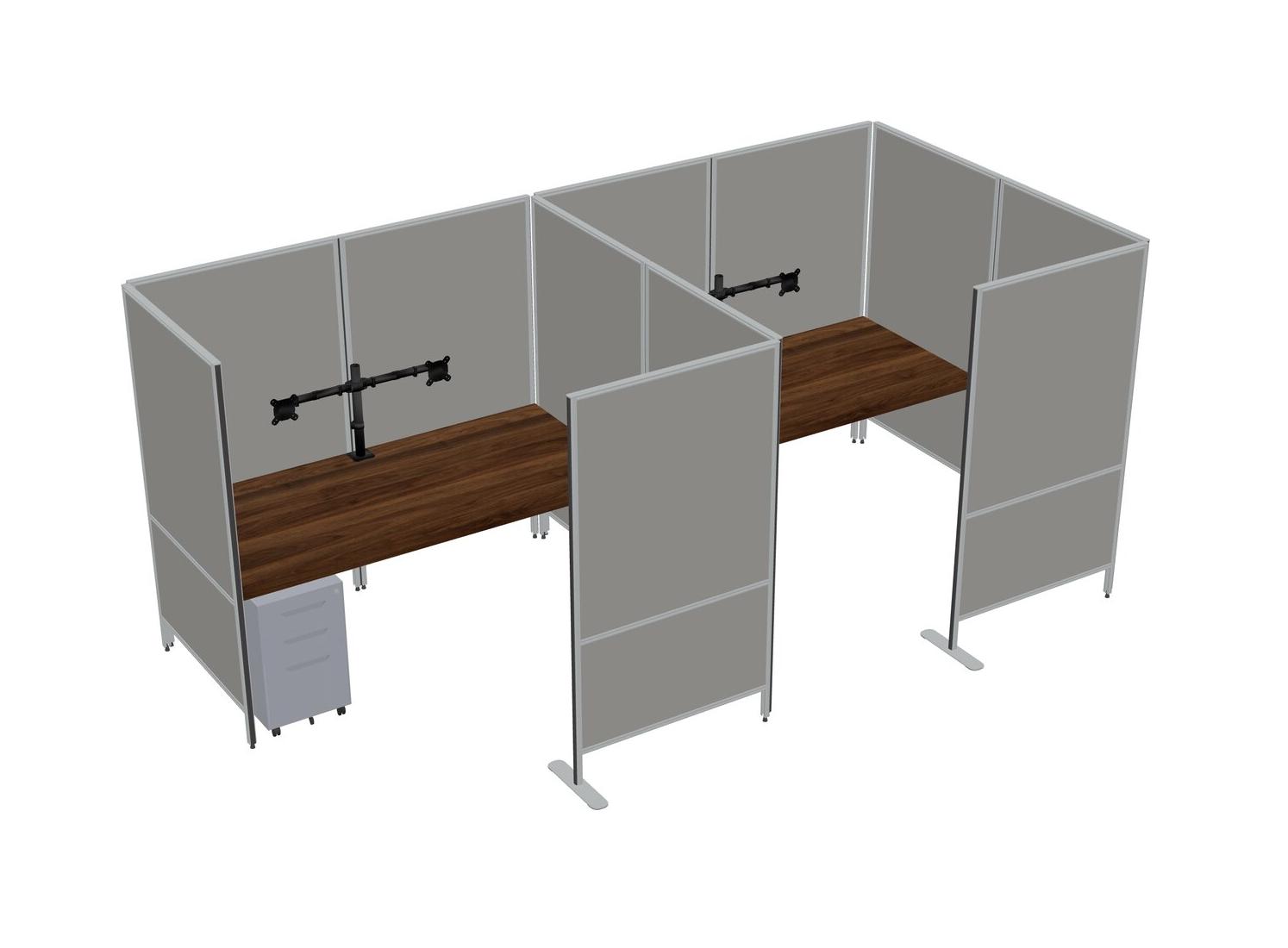 Columbia Walnut Flexible Panel System With Privacy For 2 + Metal Mobile Drawers + Monitor Arm (double Arms)