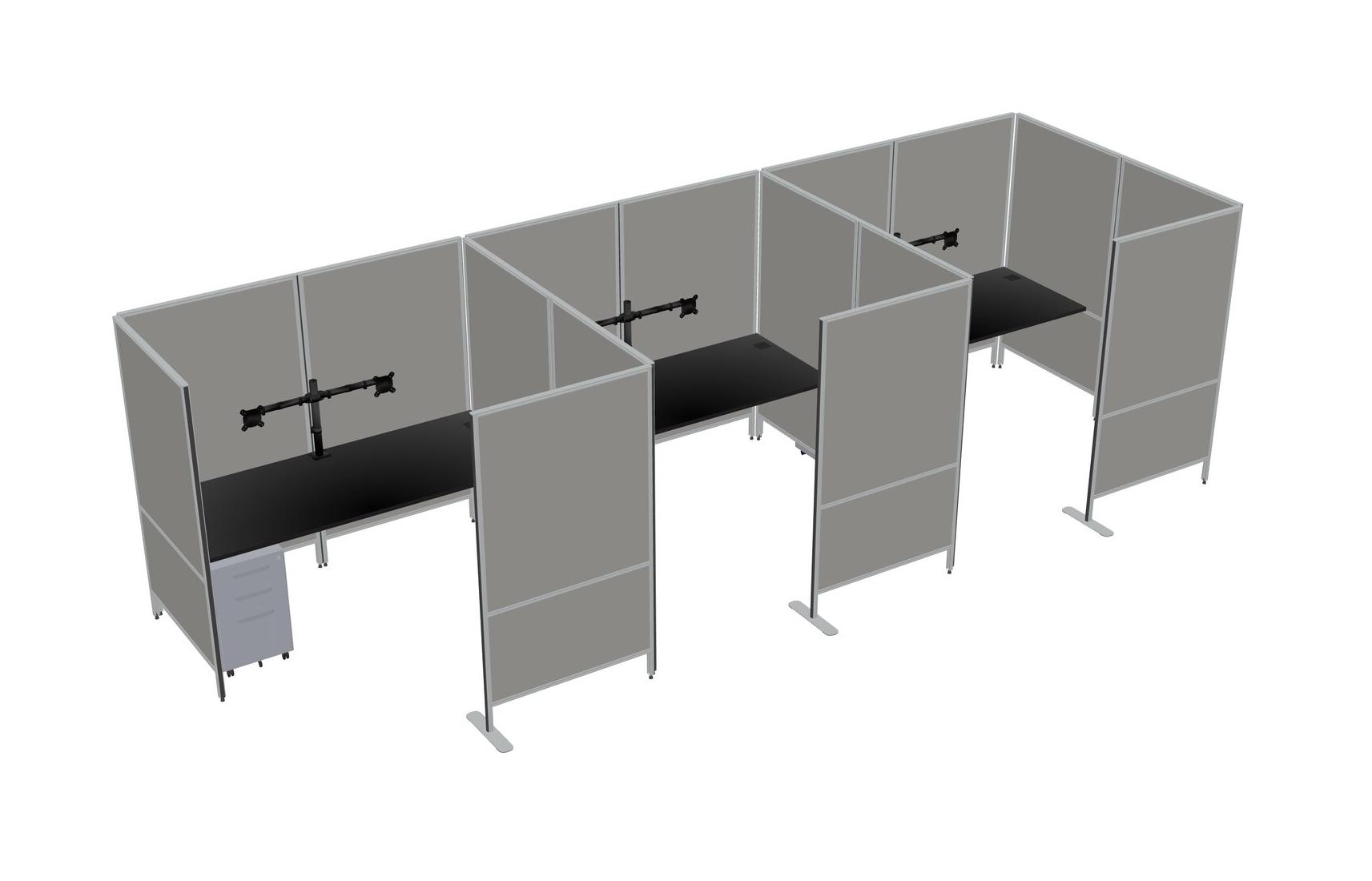 Black Flexible Panel System With Privacy For 3 + Metal Mobile Drawers + Monitor Arm (double Arms)
