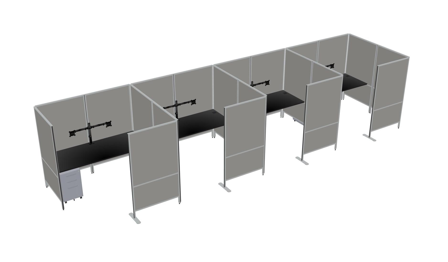 Black Flexible Panel System With Privacy For 4 + Metal Mobile Drawers + Monitor Arm (double Arms)