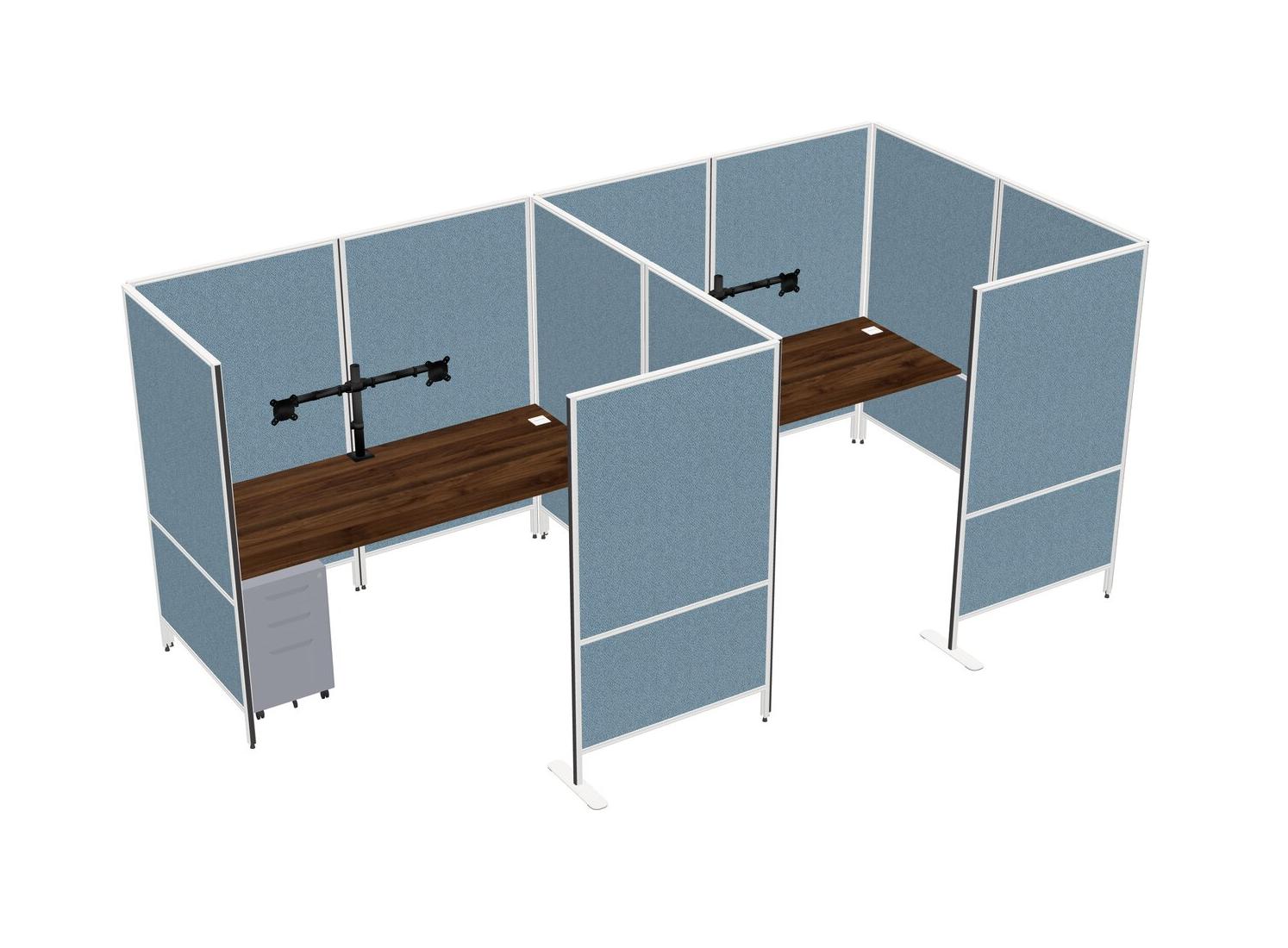 Columbia Walnut Flexible Panel System With Privacy For 2 + Metal Mobile Drawers + Monitor Arm (double Arms)