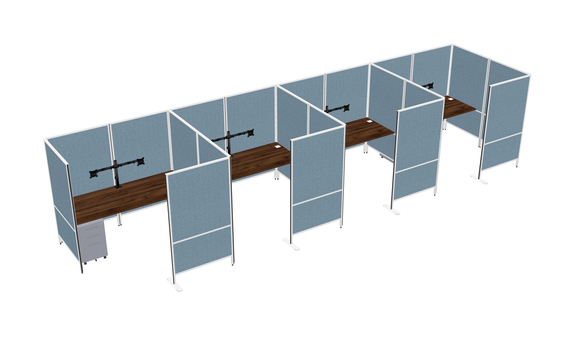 Columbia Walnut Flexible Panel System With Privacy For 4 + Metal Mobile Drawers + Monitor Arm (double Arms)