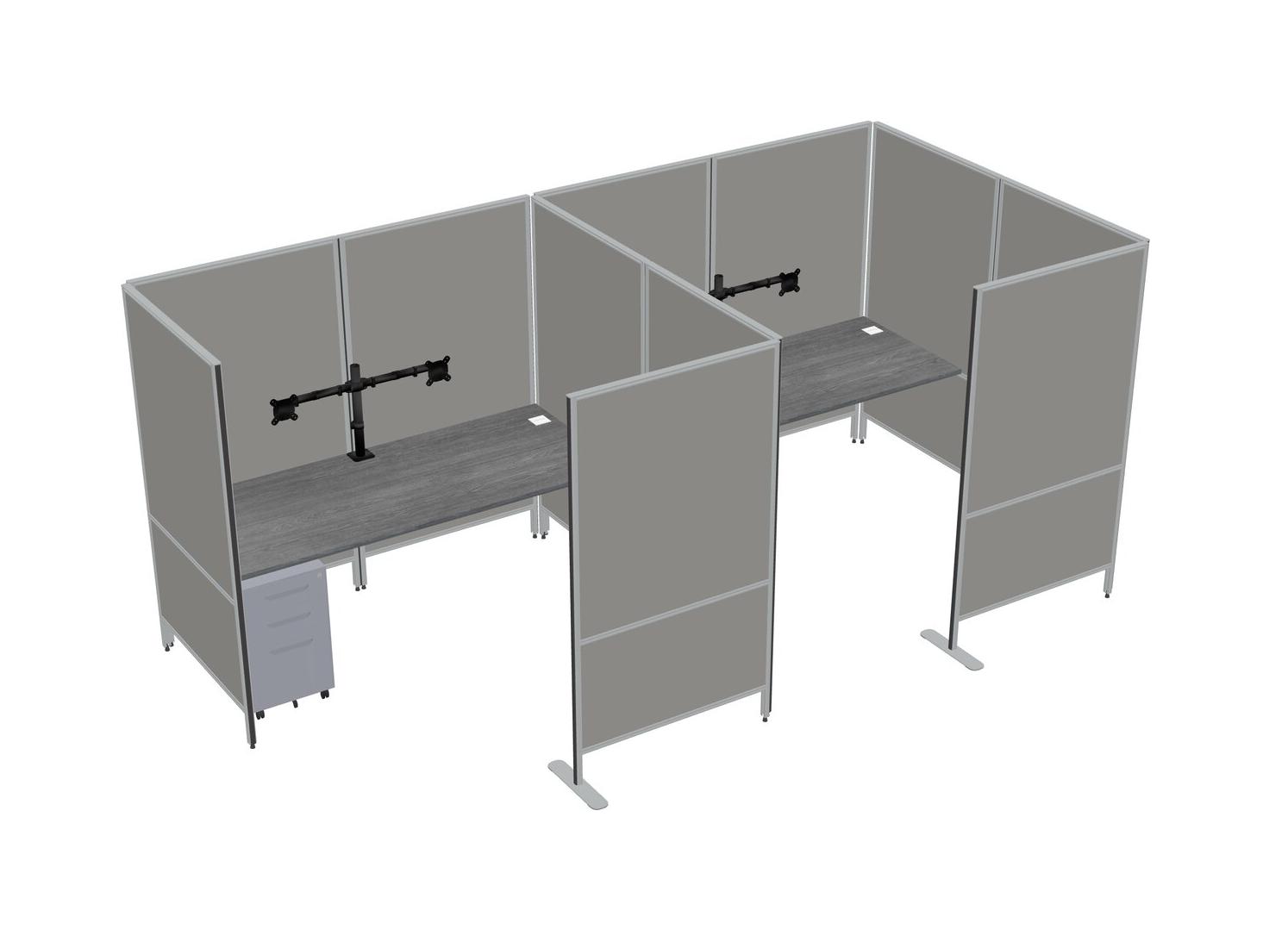 Grey Flexible Panel System With Privacy For 2 + Metal Mobile Drawers + Monitor Arm (double Arms)