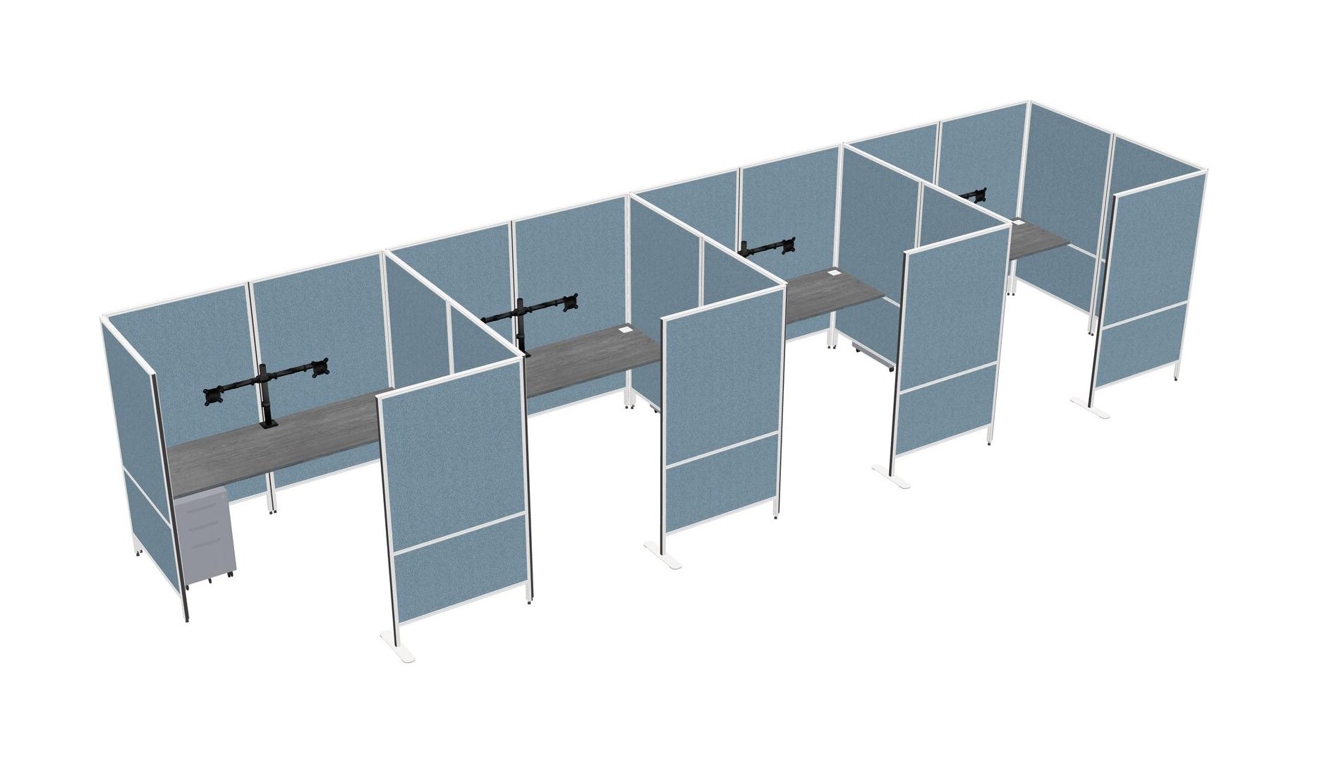 Grey Flexible Panel System With Privacy For 4 + Metal Mobile Drawers + Monitor Arm (double Arms)