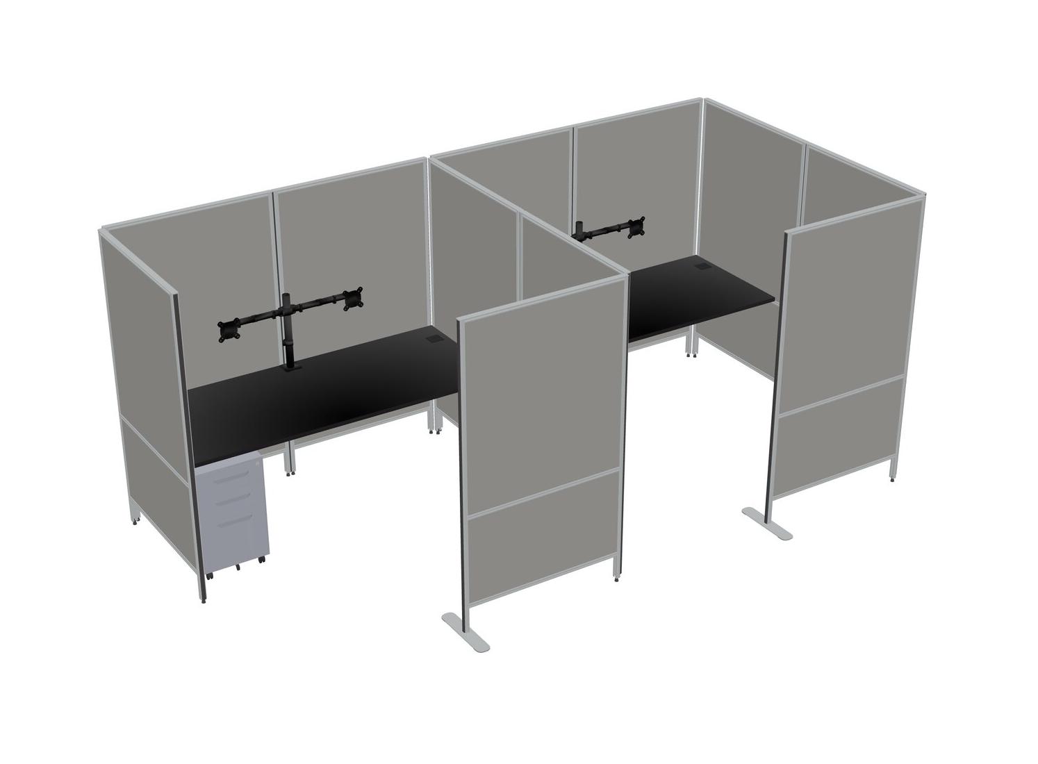 Black Flexible Panel System With Privacy For 2 + Metal Mobile Drawers + Monitor Arm (double Arms)