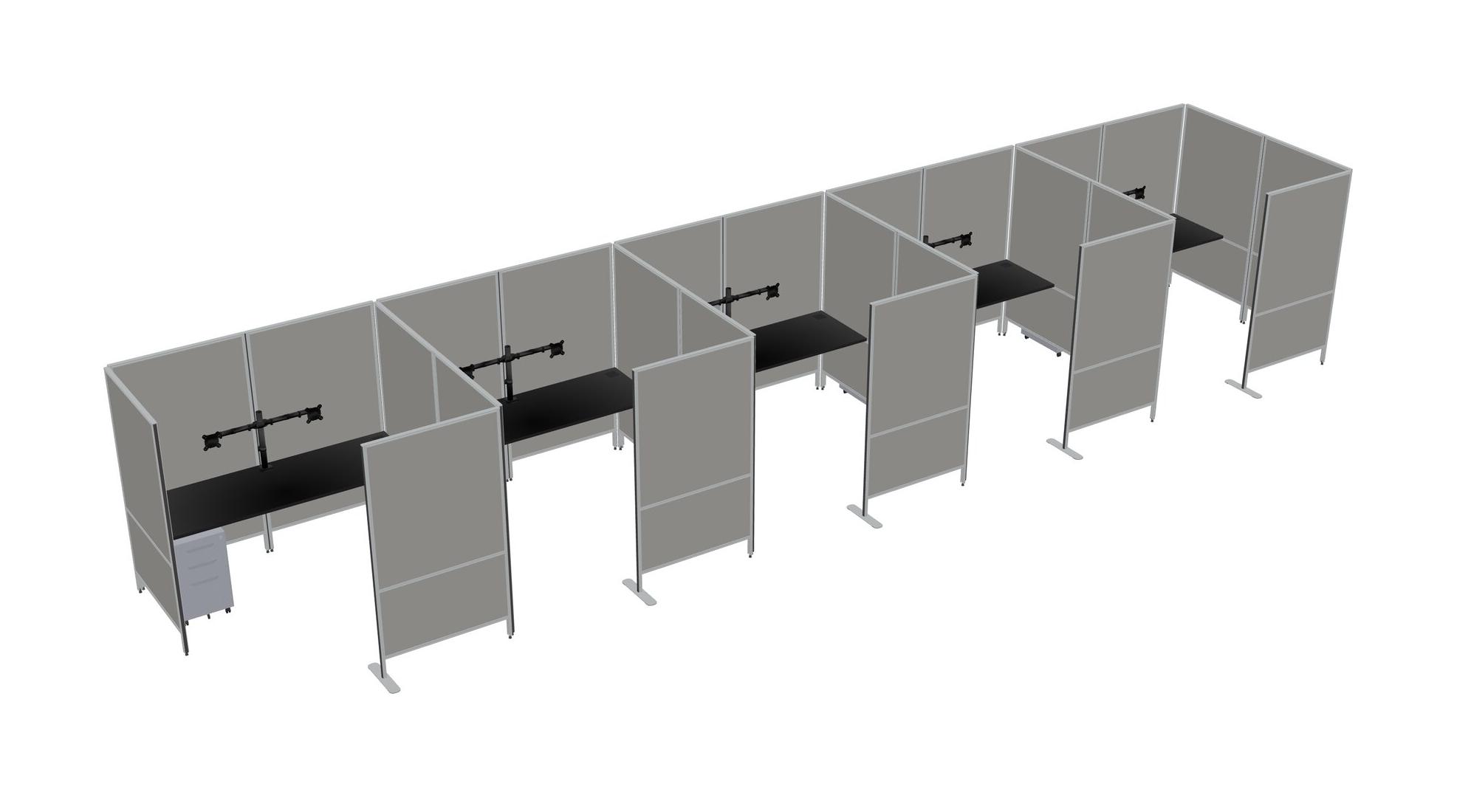 Black Flexible Panel System With Privacy For 5 + Metal Mobile Drawers + Monitor Arm (double Arms)