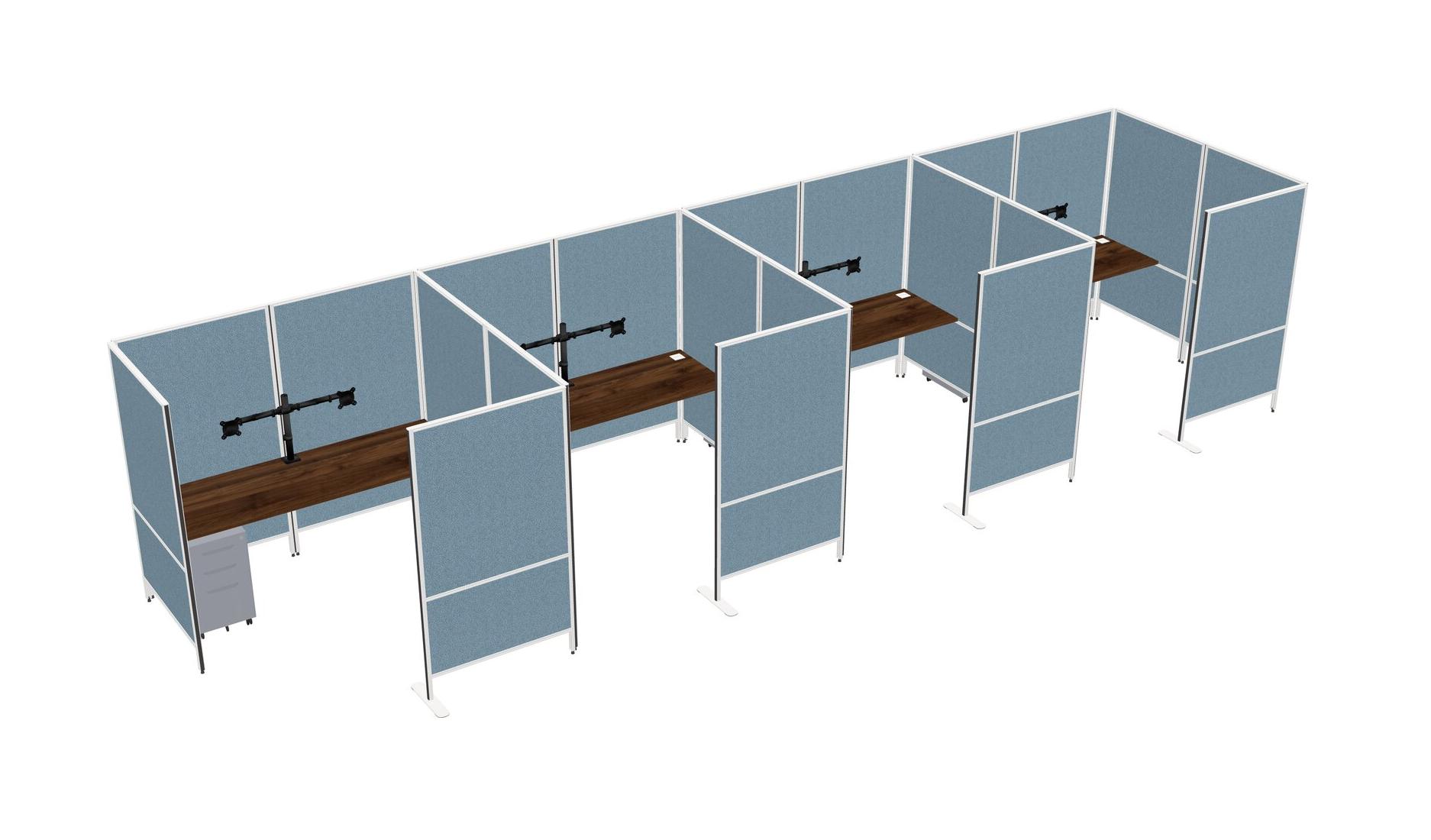 Columbia Walnut Flexible Panel System With Privacy For 4 + Metal Mobile Drawers + Monitor Arm (double Arms)