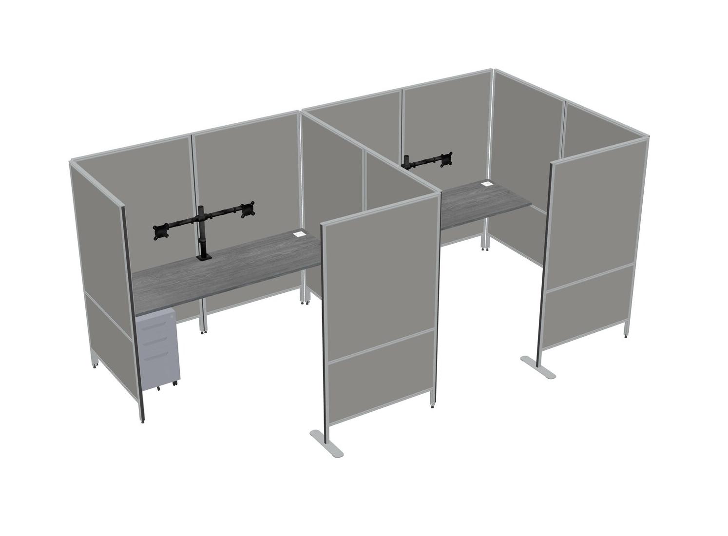 Grey Flexible Panel System With Privacy For 2 + Metal Mobile Drawers + Monitor Arm (double Arms)