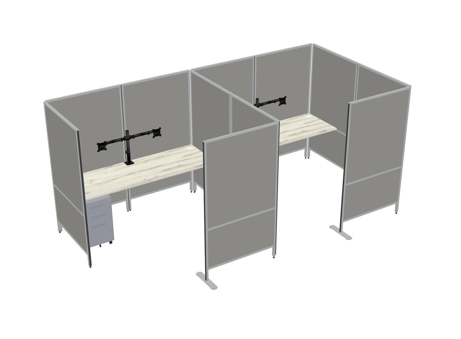 Heinne Holz Flexible Panel System With Privacy For 2 + Metal Mobile Drawers + Monitor Arm (double Arms)