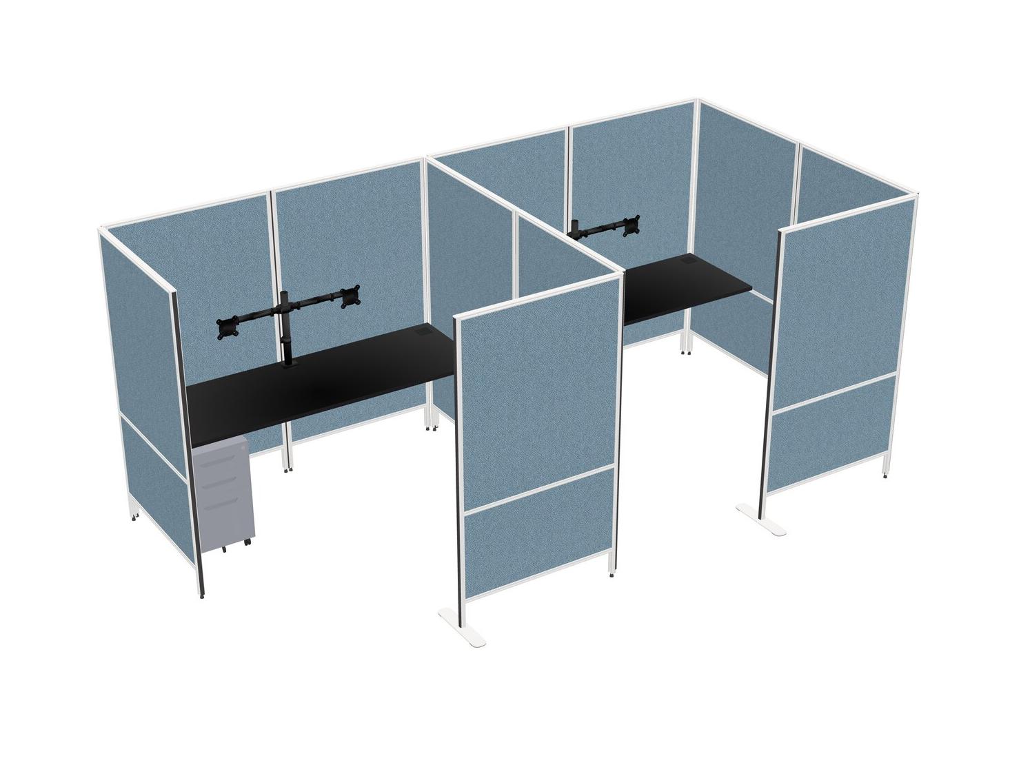 Black Flexible Panel System With Privacy For 2 + Metal Mobile Drawers + Monitor Arm (double Arms)