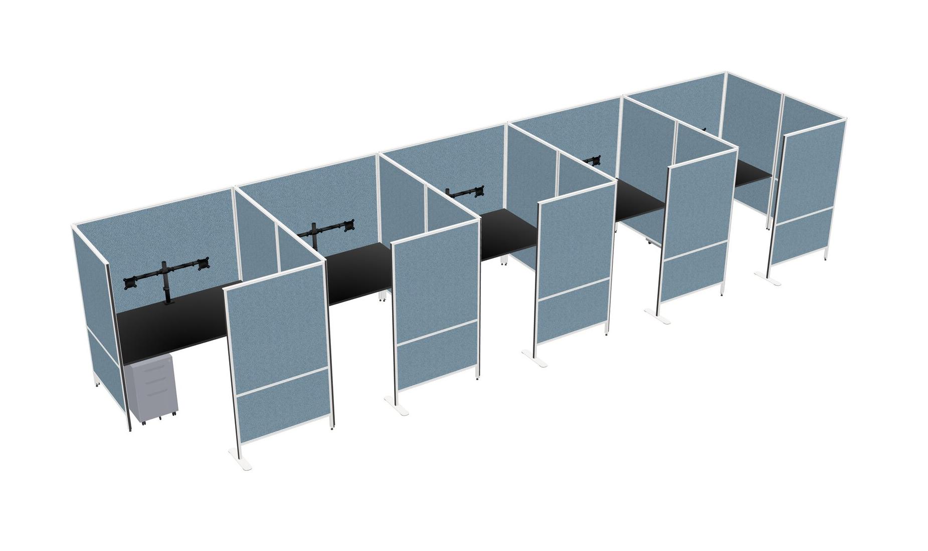 Black Flexible Panel System With Privacy For 5 + Metal Mobile Drawers + Monitor Arm (double Arms)