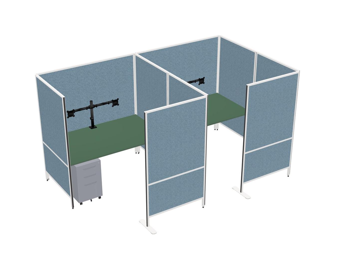 Green Flexible Panel System With Privacy For 2 + Metal Mobile Drawers + Monitor Arm (double Arms)