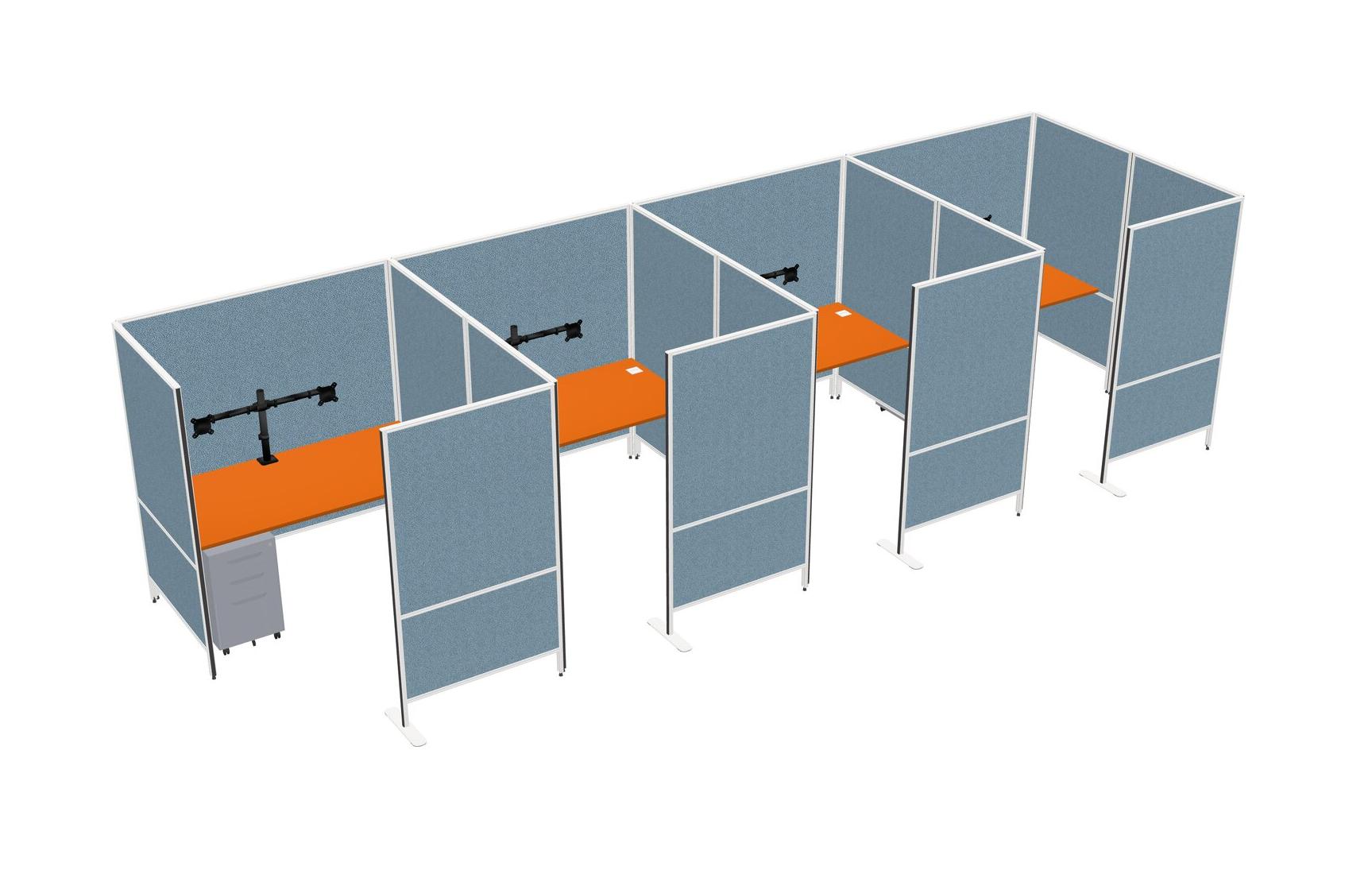Orange Flexible Panel System With Privacy For 4 + Metal Mobile Drawers + Monitor Arm (double Arms)
