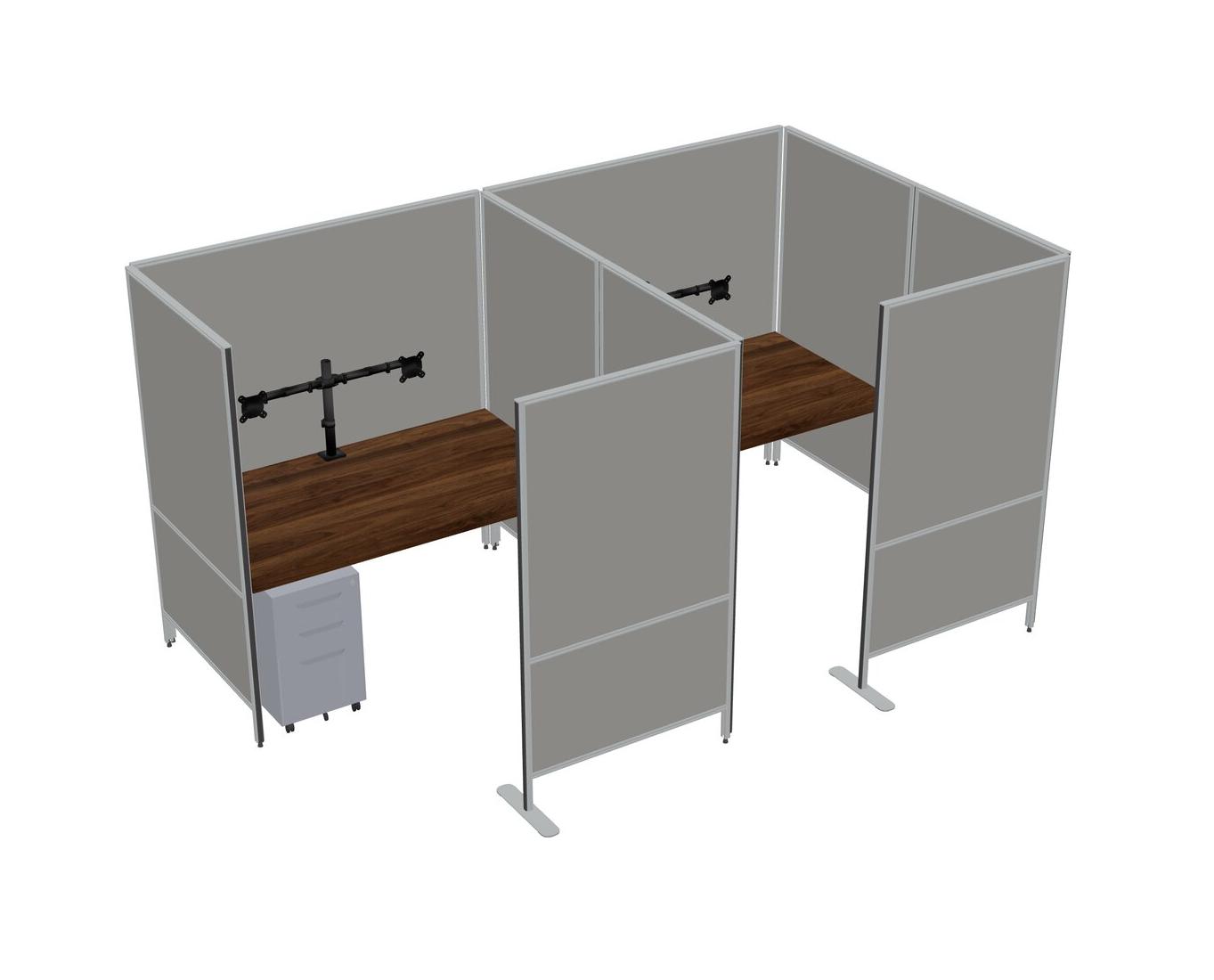 Columbia Walnut Flexible Panel System With Privacy For 2 + Metal Mobile Drawers + Monitor Arm (double Arms)