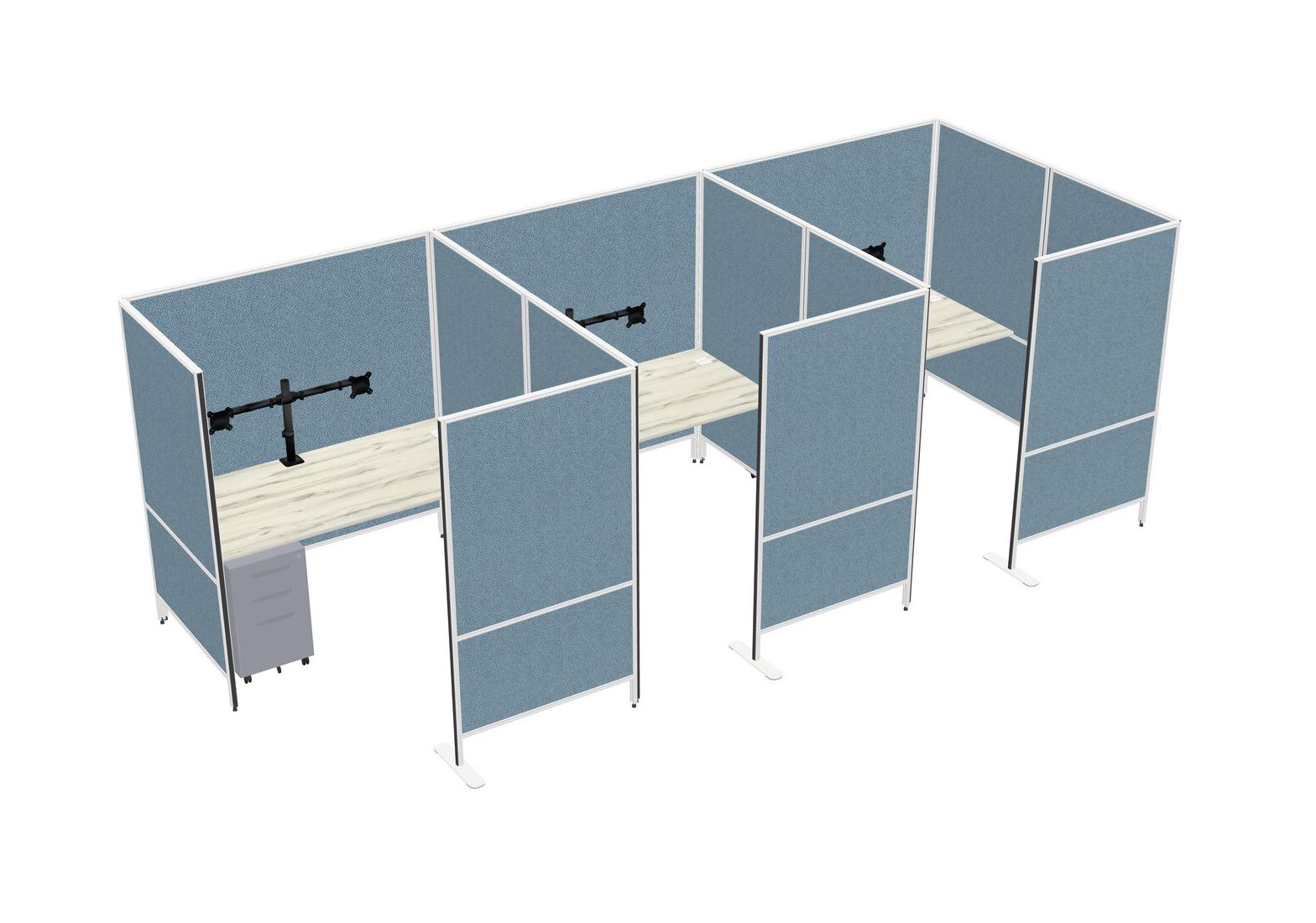 Heinne Holz Flexible Panel System With Privacy For 3 + Metal Mobile Drawers + Monitor Arm (double Arms)