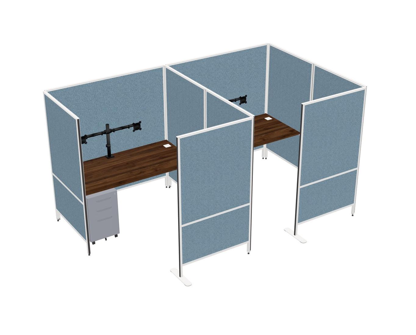 Columbia Walnut Flexible Panel System With Privacy For 2 + Metal Mobile Drawers + Monitor Arm (double Arms)