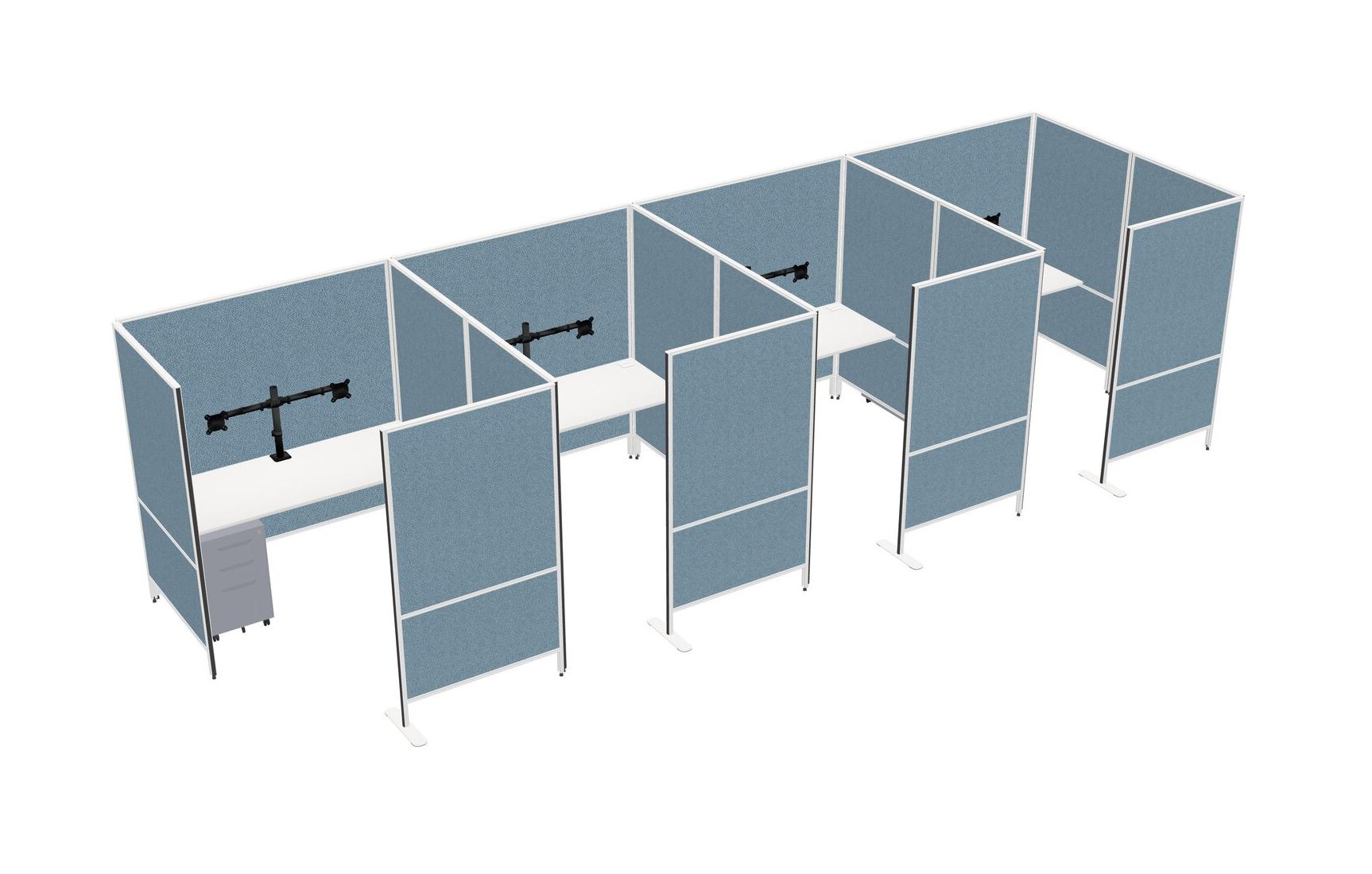 White Flexible Panel System With Privacy For 4 + Metal Mobile Drawers + Monitor Arm (double Arms)