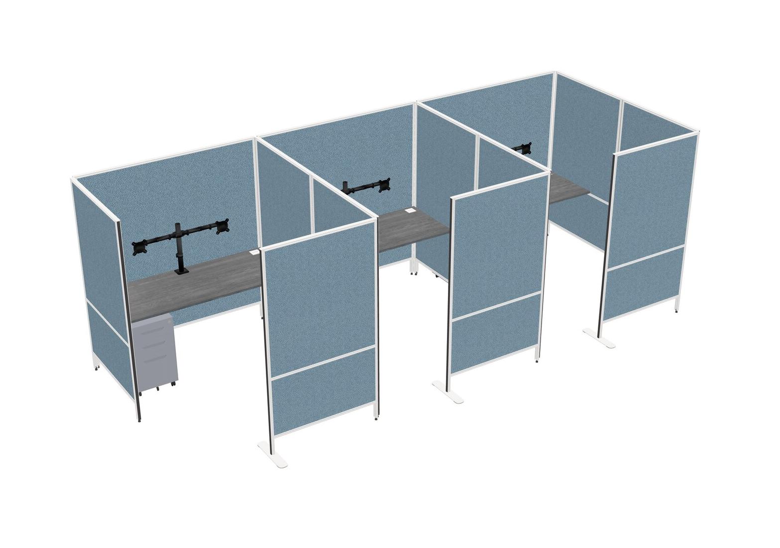 Grey Flexible Panel System With Privacy For 3 + Metal Mobile Drawers + Monitor Arm (double Arms)
