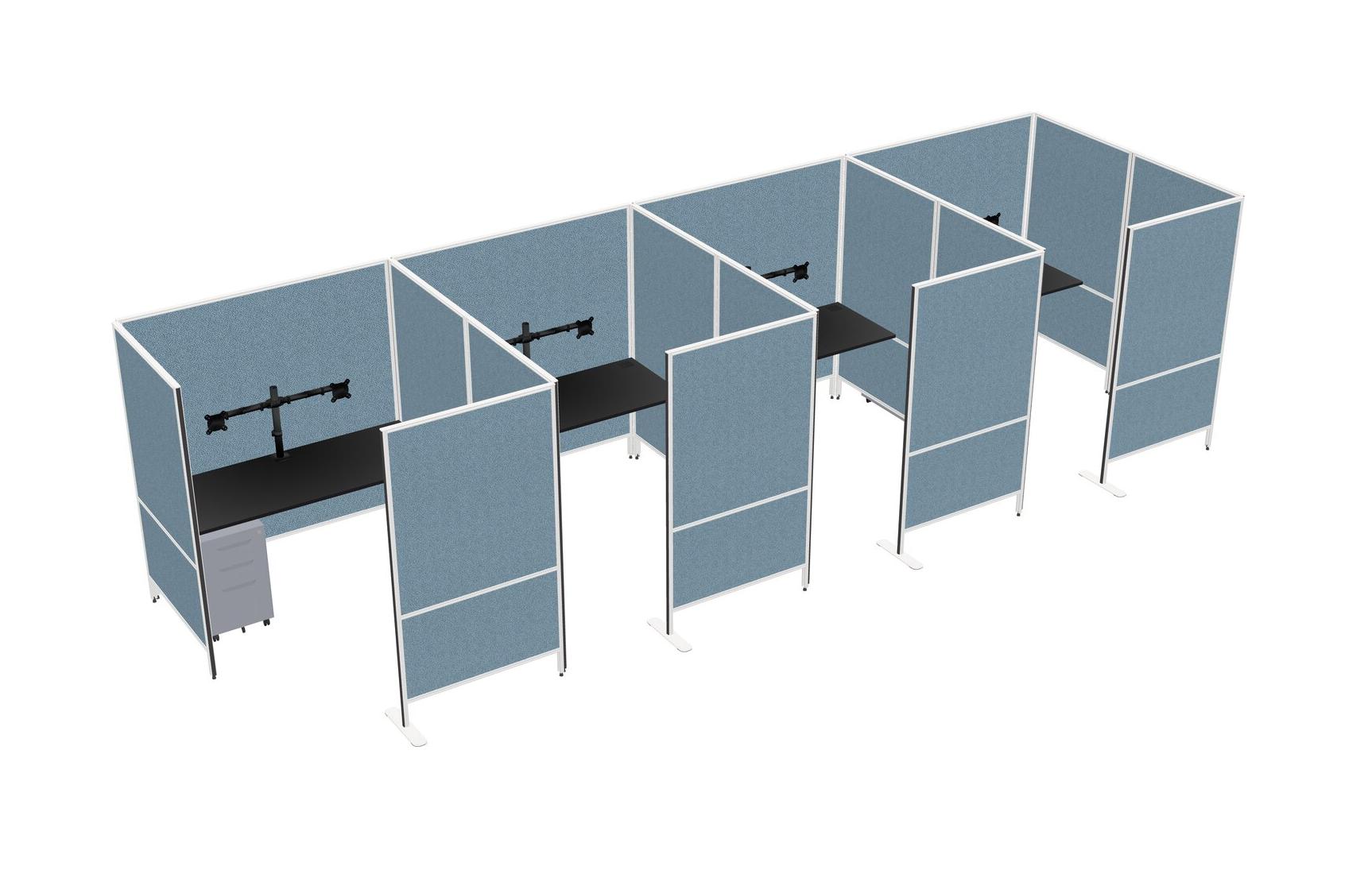 Black Flexible Panel System With Privacy For 4 + Metal Mobile Drawers + Monitor Arm (double Arms)