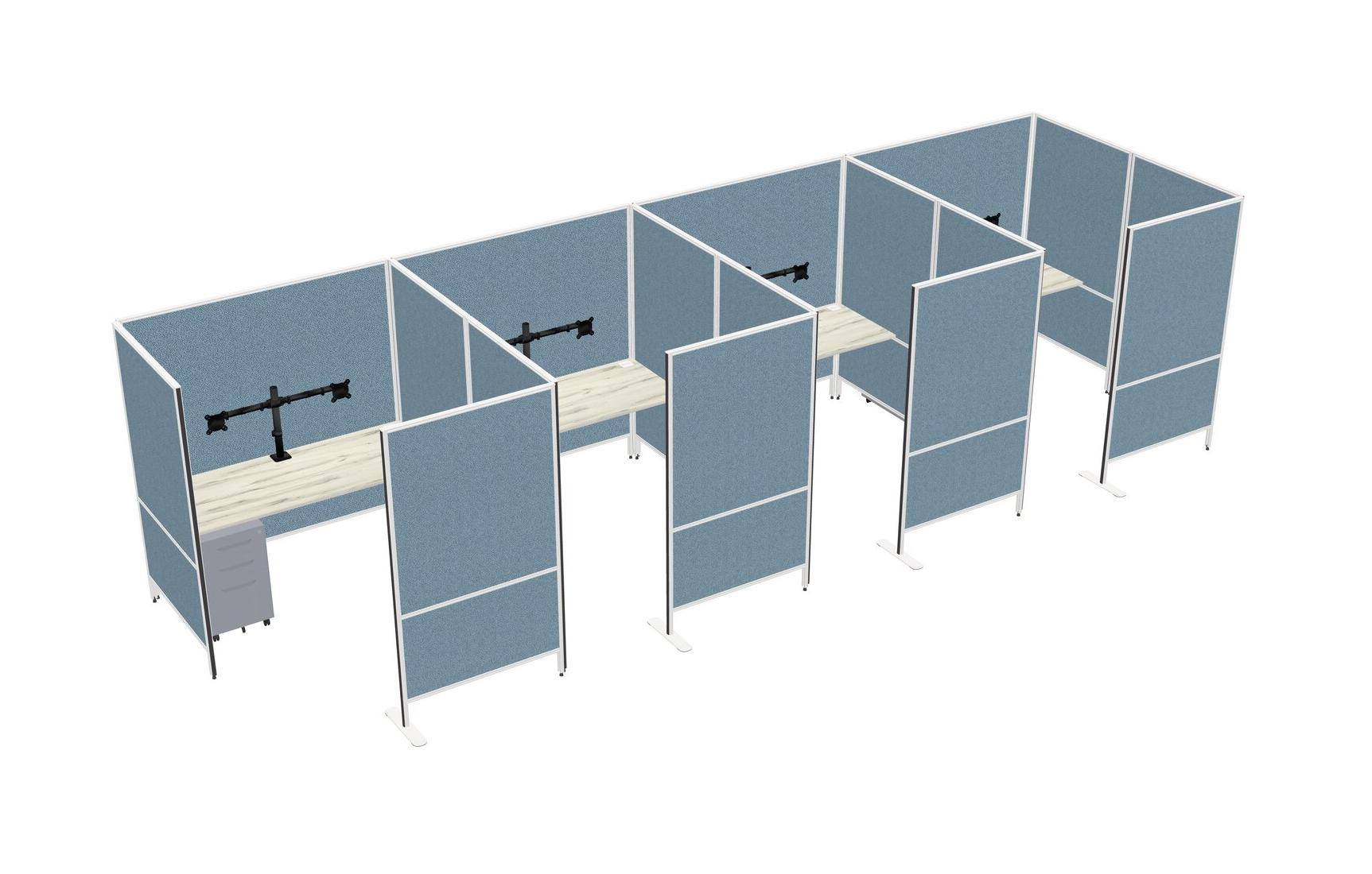 Heinne Holz Flexible Panel System With Privacy For 4 + Metal Mobile Drawers + Monitor Arm (double Arms)