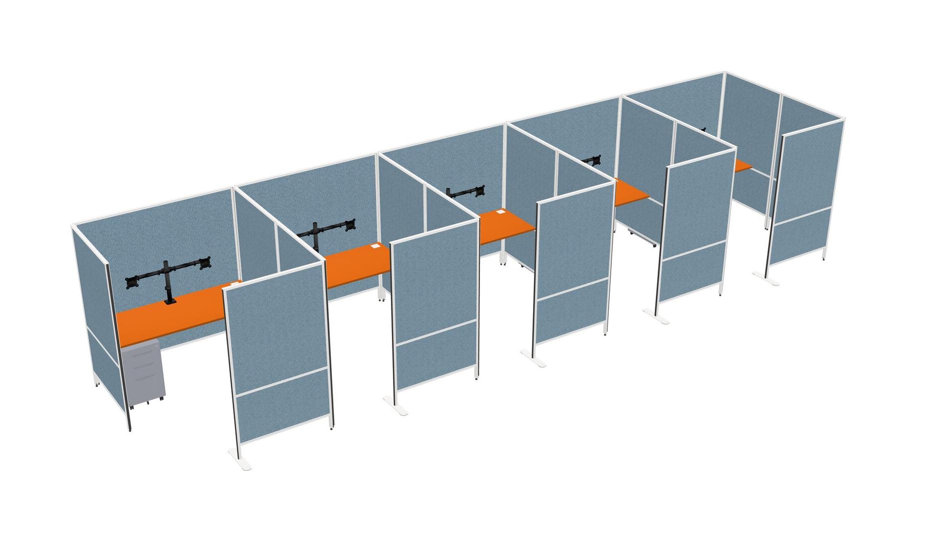Orange Flexible Panel System With Privacy For 5 + Metal Mobile Drawers + Monitor Arm (double Arms)