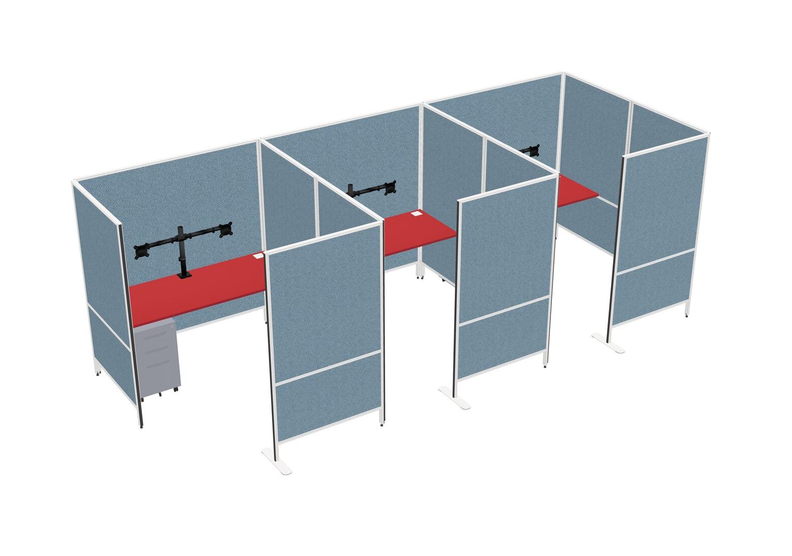Prism Red Flexible Panel System With Privacy For 3 + Metal Mobile Drawers + Monitor Arm (double Arms)