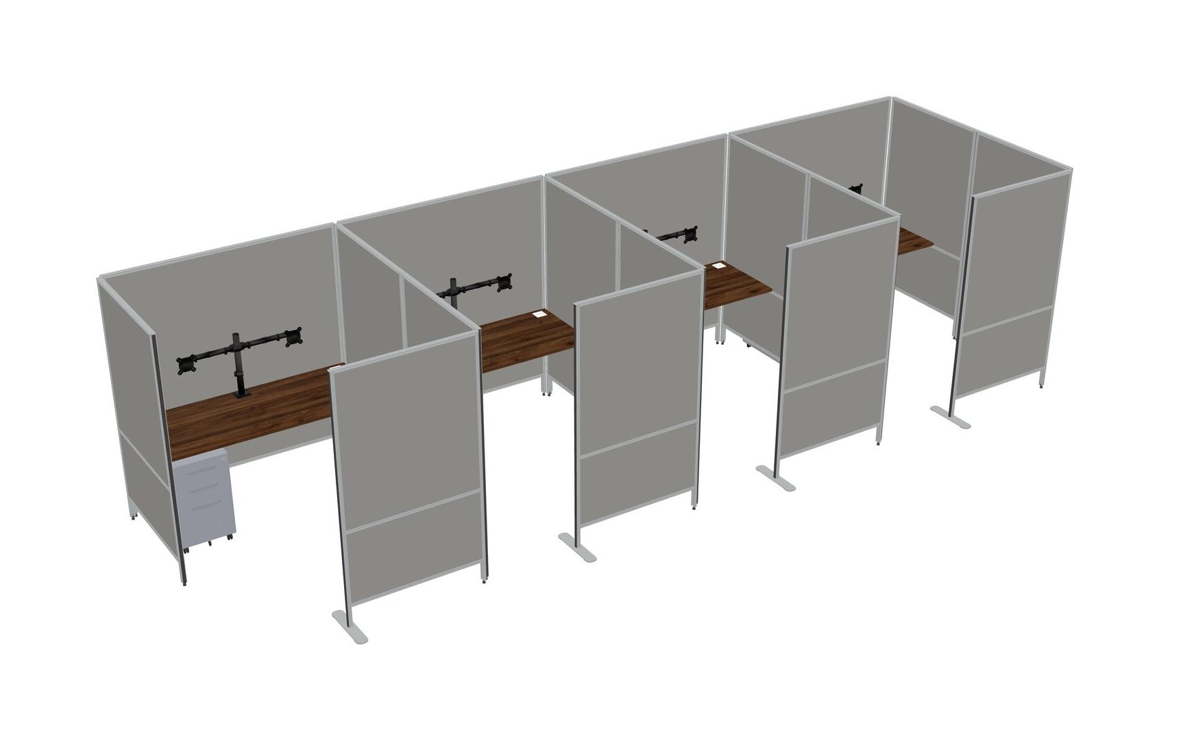 Columbia Walnut Flexible Panel System With Privacy For 4 + Metal Mobile Drawers + Monitor Arm (double Arms)