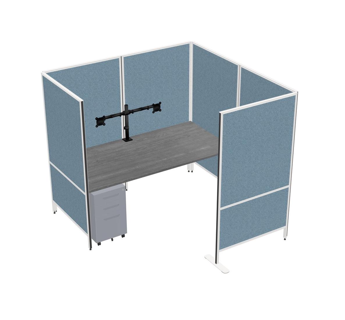 Grey Flexible Panel System With Privacy For 1 + Metal Mobile Drawers + Monitor Arm (double Arms)