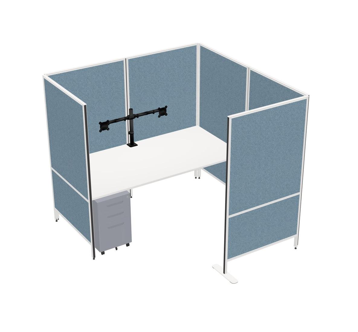 White Flexible Panel System With Privacy For 1 + Metal Mobile Drawers + Monitor Arm (double Arms)