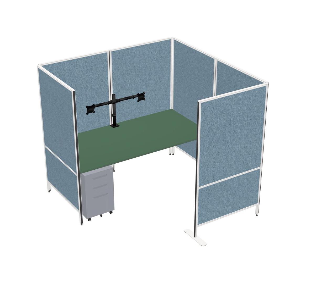 Green Flexible Panel System With Privacy For 1 + Metal Mobile Drawers + Monitor Arm (double Arms)
