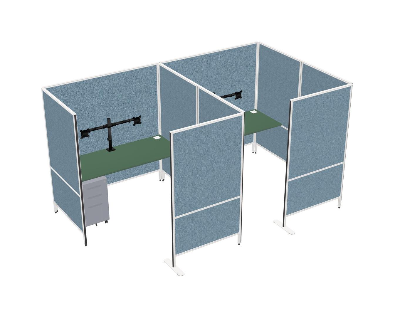 Green Flexible Panel System With Privacy For 2 + Metal Mobile Drawers + Monitor Arm (double Arms)