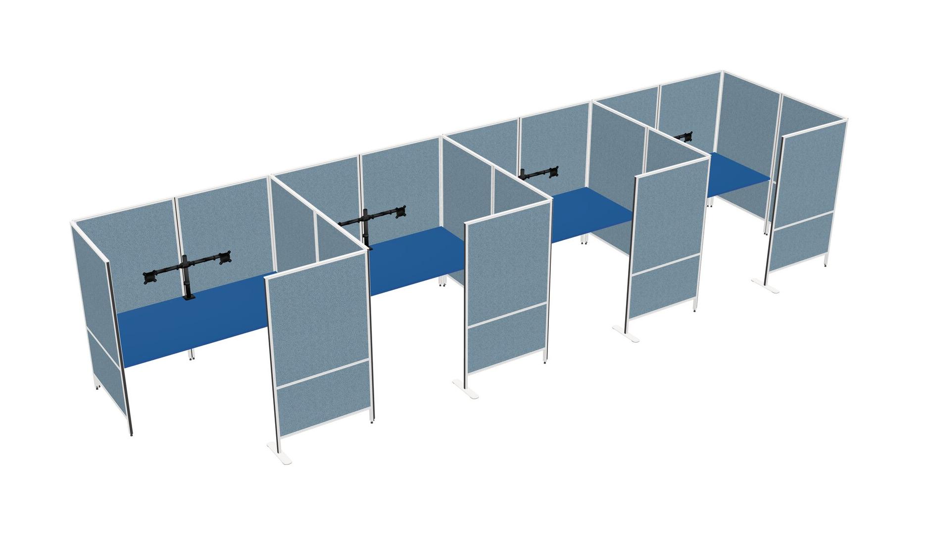 Prism Blue Flexible Panel System With Privacy For 4 + Monitor Arm (double Arms)
