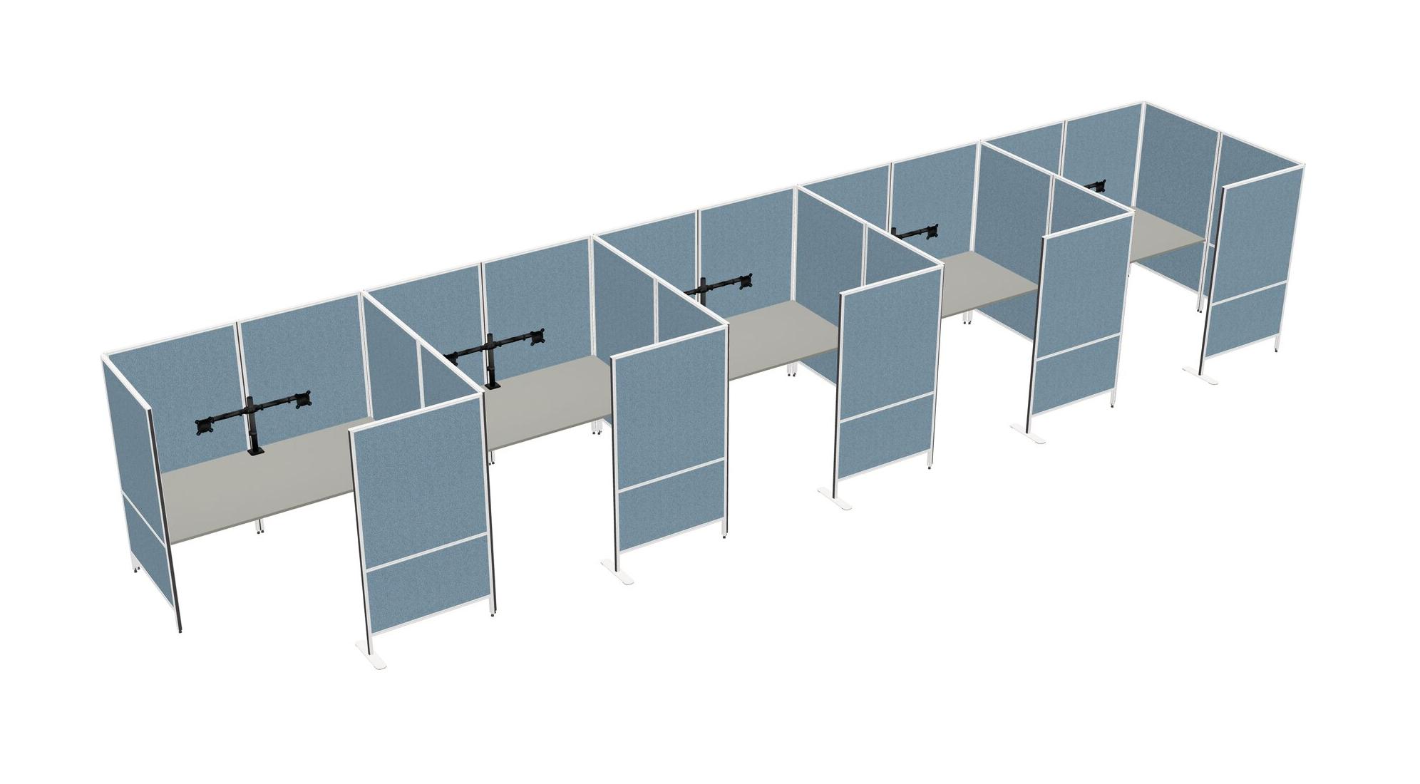 Grey Shadows Flexible Panel System With Privacy For 5 + Monitor Arm (double Arms)