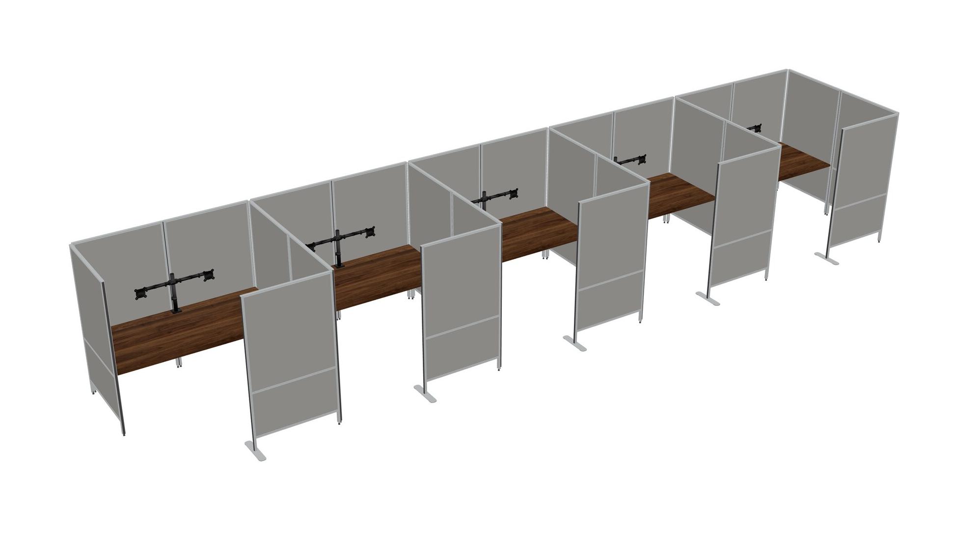 Columbia Walnut Flexible Panel System With Privacy For 5 + Monitor Arm (double Arms)