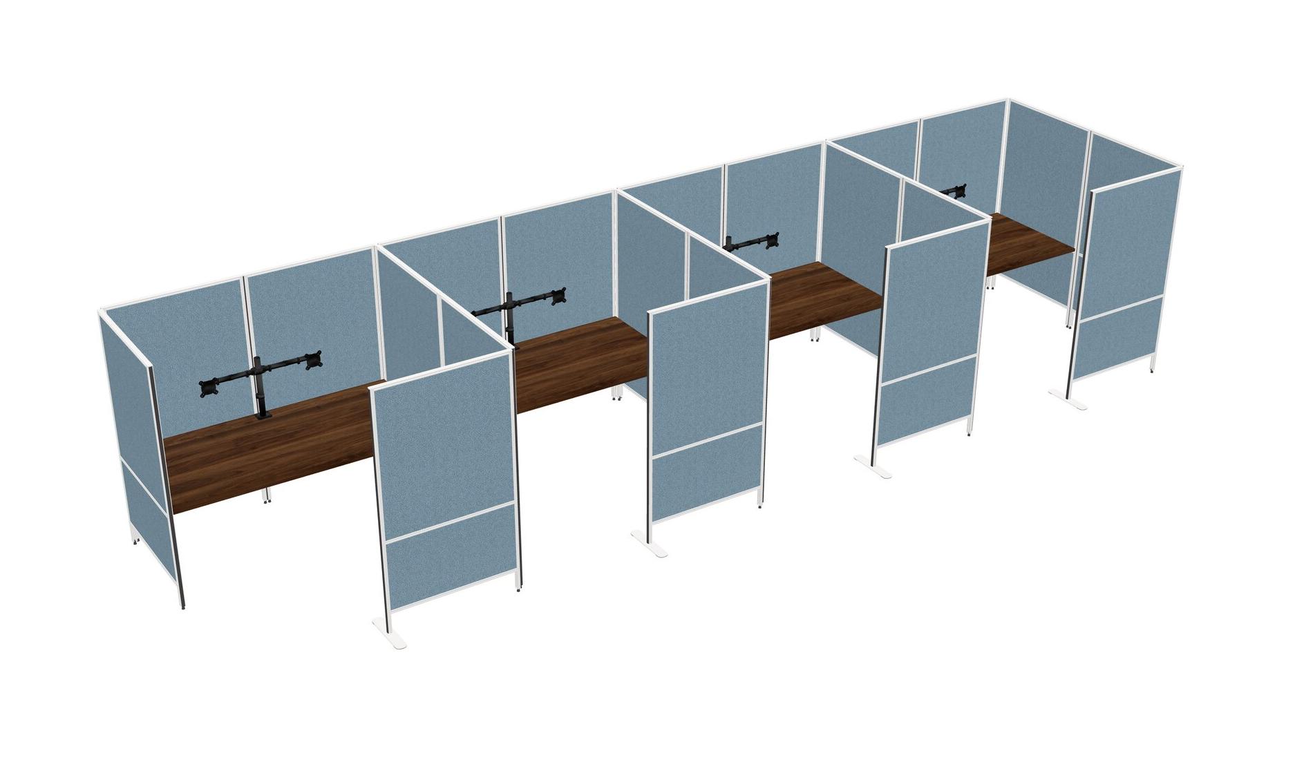 Columbia Walnut Flexible Panel System With Privacy For 4 + Monitor Arm (double Arms)