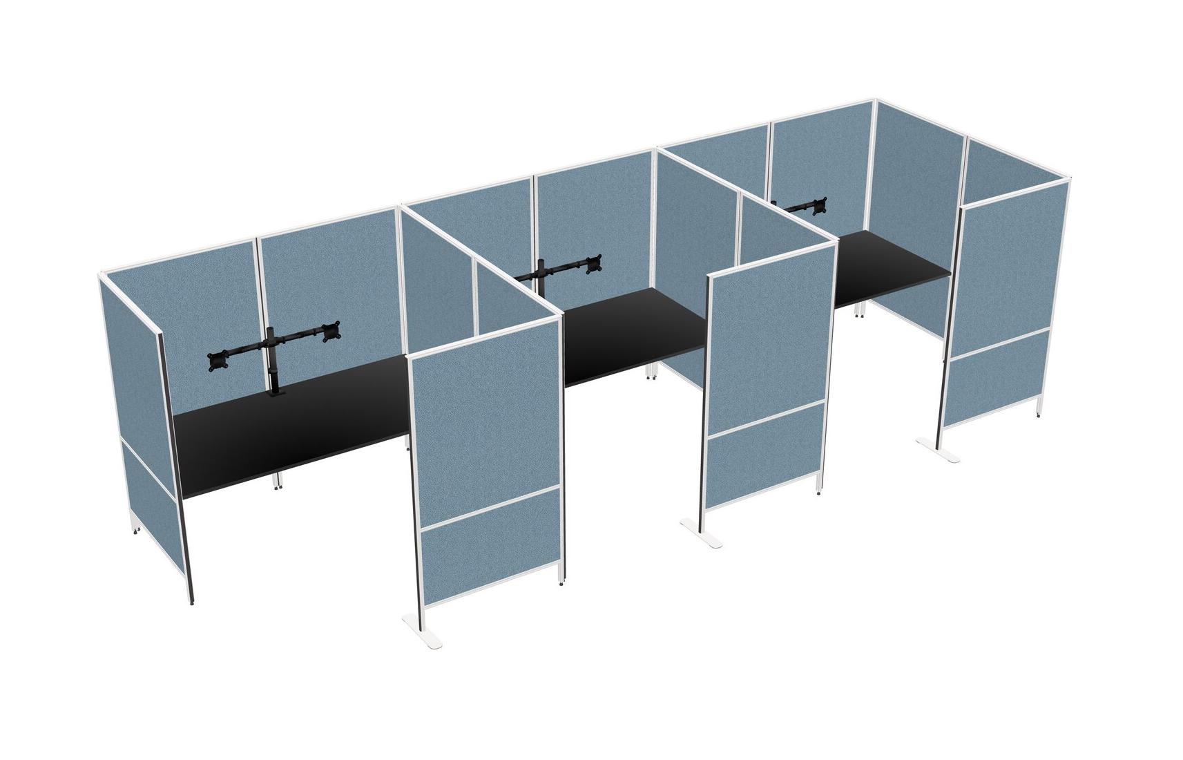 Black Flexible Panel System With Privacy For 3 + Monitor Arm (double Arms)